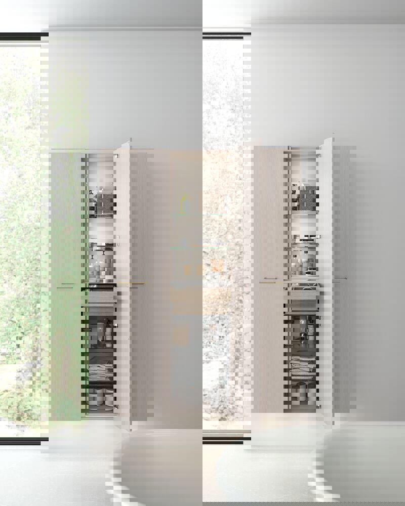 Bathroom storage becomes simple and stylish with Dansani Calidris tall units. These units are not only functional, but also look good and fit perfectly into modern bathrooms. With smart shelves and compartments, the Calidris tall units allow you to arrange everything from towels and toiletries to beauty products in an organised manner. The elegant design and clean lines of the tall units bring a sense of order and harmony to the bathroom. NB: There is a start-up fee (BI2) for products with oak and bespoke colour. It is an one-off surcharge per oak and bespoke colour regardless number of products. Remember to add the little practical things to your bathroom furniture that you will enjoy on a daily basis. For example, lights in drawers and cabinets, built-in electrical sockets and dimmed sensor lights under the furniture to guide night-time bathroom visits. Options are ordered at the same time as your furniture.