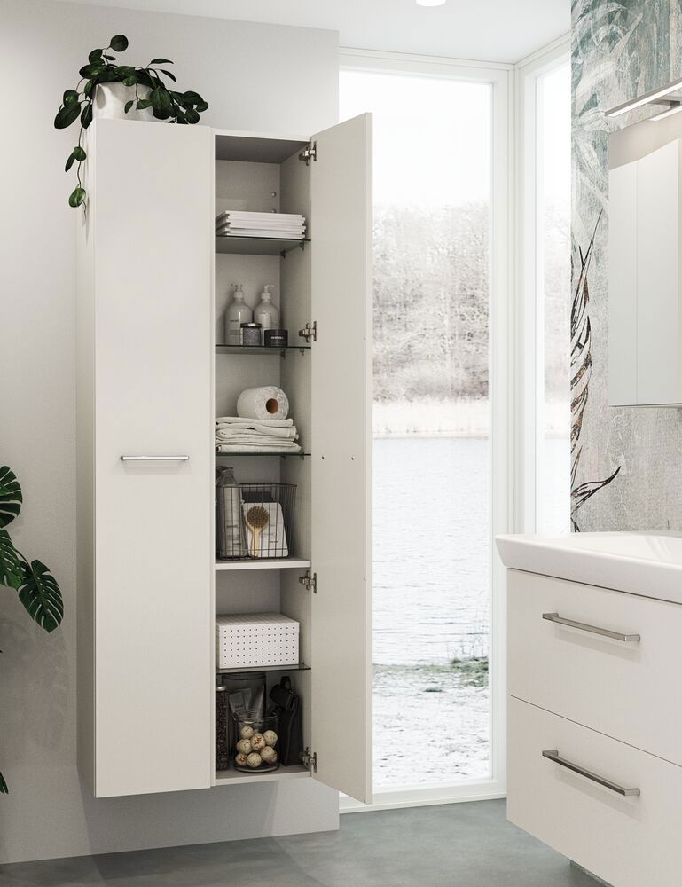 Create elegance and functionality in your bathroom with this Dansani Mido+ tall cabinet. The tall cabinet gives you plenty of extra storage space in the bathroom, and in this cabinet you'll find 1 wooden shelf and 4 beautiful glass shelves. A tall cabinet is a great solution if you need extra storage in the bathroom, and here you can also create a sense of luxury in your bathroom. With great Danish design and smart storage options, this tall cabinet is an ideal addition to any stylish bathroom.