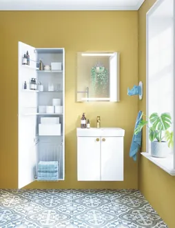 Make use of every bit of space in your bathroom with the Dansani Mido+ tall cabinet. With a tall cabinet you can fit all your essentials, so if you have the space, we really recommend a tall cabinet for your bathroom. In this tall cabinet you'll find 1 wooden shelf, 4 glass shelves and 3 shelves on the door itself, giving you plenty of space and the opportunity to perfectly organise your bathroom. Experience a new feeling of order and design in your bathroom with the Dansani Mido+ tall cabinet.