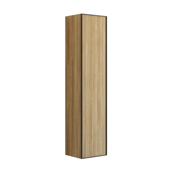 Get a modern and stylish look with the 40 cm wide tall cabinet with black frame. This elegant tall cabinet is Version A, featuring one wooden shelf and five glass shelves, providing plenty of storage space for your bathroom items. The black frame adds a sophisticated contrast that fits perfectly into any bathroom. With this tall cabinet, you get both functionality and a timeless design that helps keep your bathroom organized and stylish. NB: There is a start-up fee (BI2) for products with bespoke colour. It is an one-off surcharge per bespoke colour regardless number of products. Remember to add the little practical things to your bathroom furniture that you will enjoy on a daily basis. For example, lights in drawers and cabinets, built-in electrical sockets and dimmed sensor lights under the furniture to guide night-time bathroom visits. Options are ordered at the same time as your furniture.