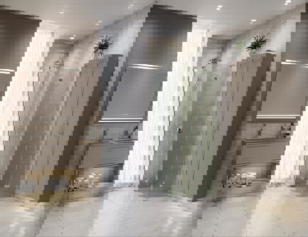 Create a timeless look in your bathroom with a tall cabinet featuring a classic frame front. This cabinet measures 176 cm in height and 35 cm in depth, offering the perfect storage solution for towels, toiletries, and other necessities. Equipped with one wooden shelf and five glass shelves, you can organize your items for easy access. The classic frame front adds elegance and fits perfectly in both traditional and modern bathrooms. NB: There is a start-up fee (BI2) for products with bespoke colour. It is an one-off surcharge per bespoke colour regardless number of products. Remember to add the little practical things to your bathroom furniture that you will enjoy on a daily basis. For example, lights in drawers and cabinets, built-in electrical sockets and dimmed sensor lights under the furniture to guide night-time bathroom visits. Options are ordered at the same time as your furniture.