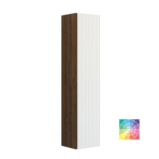 Create a welcoming atmosphere in your bathroom with this tall cabinet with grooved front in version B. This 176 cm tall cabinet has one wooden shelf, three shortened glass shelves, three wooden trays on the door and two glass shelves. The spacious storage space ensures you have everything within reach, while the grooved details add a classic touch to the decor. The tall cabinet is perfect for storing toiletries, towels and other essentials, and its stylish design makes it an aesthetic part of your bathroom. NB: There is a start-up fee (BI2) for products with bespoke colour. It is an one-off surcharge per bespoke colour regardless number of products. Remember to add the little practical things to your bathroom furniture that you will enjoy on a daily basis. For example, lights in drawers and cabinets, built-in electrical sockets and dimmed sensor lights under the furniture to guide night-time bathroom visits. Options are ordered at the same time as your furniture.