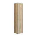 Opt for the tall cabinet with an integrated handle in Version C for a practical and stylish solution. This cabinet contains one wooden shelf, three shortened glass shelves, three wooden trays on the door, as well as two pull-out trays and a laundry bag. This combination offers ample space to keep your bathroom organized. The modern design and the handle that harmonizes with the cabinet’s surface create an elegant aesthetic, making your bathroom a place you’ll love to spend time in. NB: There is a start-up fee (BI2) for products with bespoke colour. It is an one-off surcharge per bespoke colour regardless number of products. Remember to add the little practical things to your bathroom furniture that you will enjoy on a daily basis. For example, lights in drawers and cabinets, built-in electrical sockets and dimmed sensor lights under the furniture to guide night-time bathroom visits. Options are ordered at the same time as your furniture.