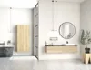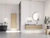 Add a unique design to your bathroom with the 60 cm wide tall cabinet with a ribbed front in Version A. This spacious double-door tall cabinet features a wooden shelf and five glass shelves, providing plenty of storage space for both larger and smaller bathroom items. The fluted front adds texture and character, enhancing the overall aesthetic of the bathroom, while the cabinet's size allows for ample organization of all your essentials. This tall cabinet with a fluted front combines functionality and style, making it ideal for creating an elegant bathroom environment. NB: There is a start-up fee (BI2) for products with bespoke colour. It is an one-off surcharge per bespoke colour regardless number of products. Remember to add the little practical things to your bathroom furniture that you will enjoy on a daily basis. For example, lights in drawers and cabinets, built-in electrical sockets and dimmed sensor lights under the furniture to guide night-time bathroom visits. Options are ordered at the same time as your furniture.
