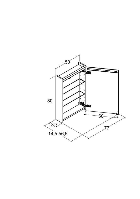 Top Mirror cabinet 80x50 cm integrated LED light in top, right-hinged