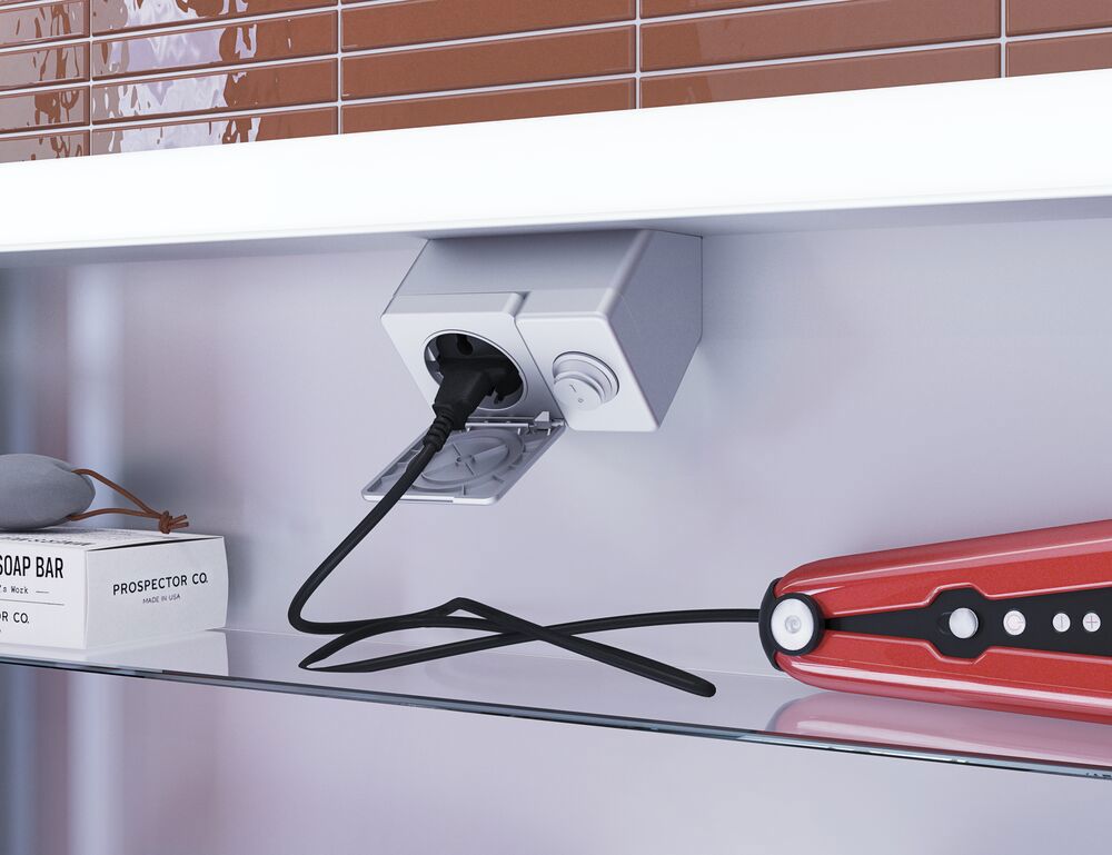 Take your morning to new heights with the Top mirror cabinet. This mirror cabinet has a lighting strip running the full cabinet width at the top of the cabinet, while inside you'll find plenty of storage space and an electrical socket with a switch. So you get much more than you might expect. Of course, the mirror cabinet is available with gables in beautiful colours, allowing you to create a uniform look in your bathroom.