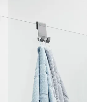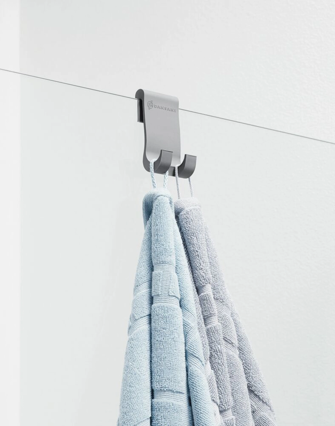 This smart silicone towel hook is available in both light and dark gray. It's a set of two double hooks that are very practical. You can hang them on the edge of the shower glass, either inside or outside. These hooks are perfect for hanging towels, brushes, sponges and other items so they're close at hand when you're in the shower and need them.