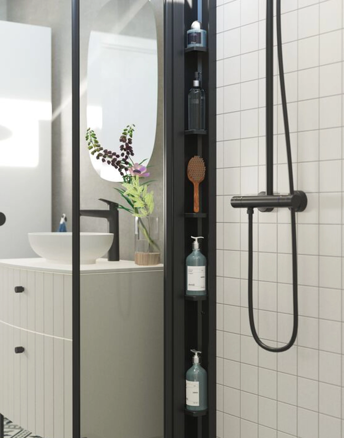 Dansani Tower is an innovative solution that provides exceptional storage space in the shower without compromising on aesthetics. This intelligent storage system combines seamlessly with Dansani's Match doors and panels to create a cohesive and stylish shower solution. Tower has 5 removable shelves that are perfect for organizing the products and care items you use in your shower. To accommodate Tower, simply choose a panel or door that is 10cm smaller than your installation. Dansani Tower is the ideal solution for those who want to optimise the space in their shower without compromising on style and functionality. With Tower, you get both practical storage space and an elegant shower experience that gives you a sense of well-being and order in your shower room.