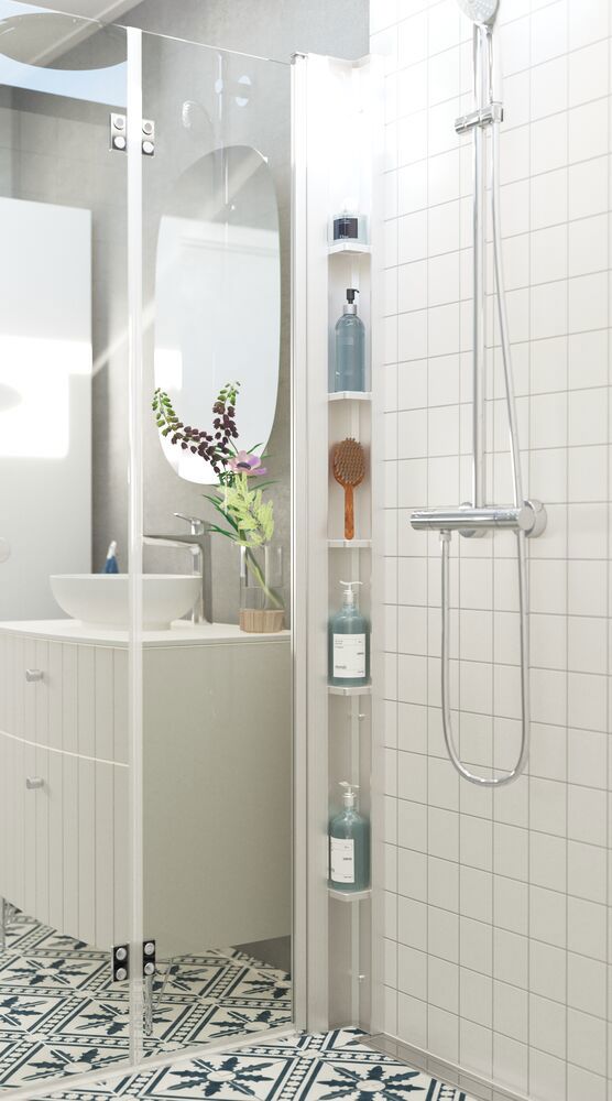 Dansani Tower is an innovative solution that provides exceptional storage space in the shower without compromising on aesthetics. This intelligent storage system combines seamlessly with Dansani's Match doors and panels to create a cohesive and stylish shower solution. Tower has 5 removable shelves that are perfect for organizing the products and care items you use in your shower. To accommodate Tower, simply choose a panel or door that is 10cm smaller than your installation. Dansani Tower is the ideal solution for those who want to optimise the space in their shower without compromising on style and functionality. With Tower, you get both practical storage space and an elegant shower experience that gives you a sense of well-being and order in your shower room.