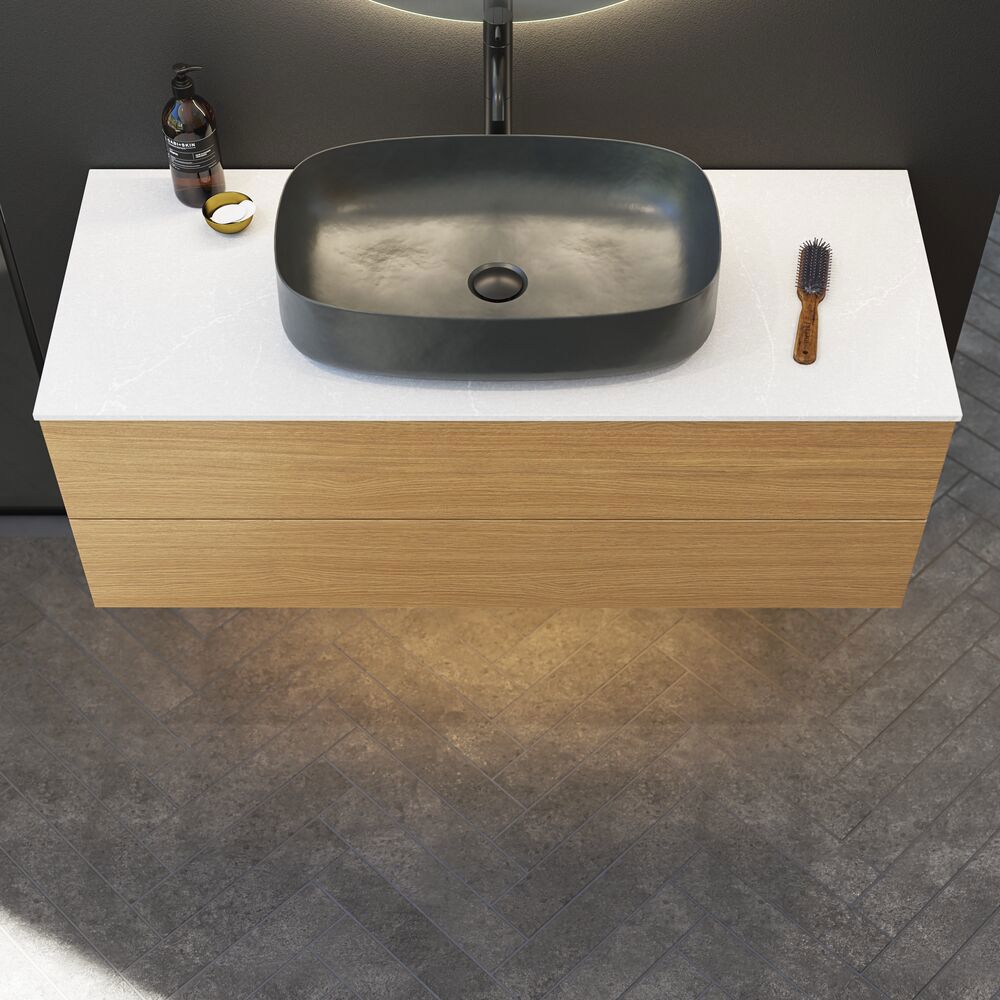 The Dansani Calidris Unique worktop, which is made from Silestone, is an impressive fusion of aesthetics and durability that will transform your bathroom. As well as being beautiful to look at, this worktop is made from durable Silestone that will withstand the rigours of daily use while retaining its beauty. The worktop is available in custom sizes, so you can tailor the countertop to fit your needs and your bathroom exactly. The colour of the worktop may differ from the image shown, so we recommend that you see a sample at a retailer before your purchase.