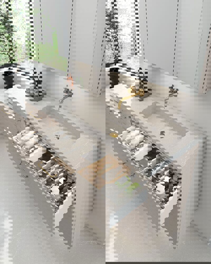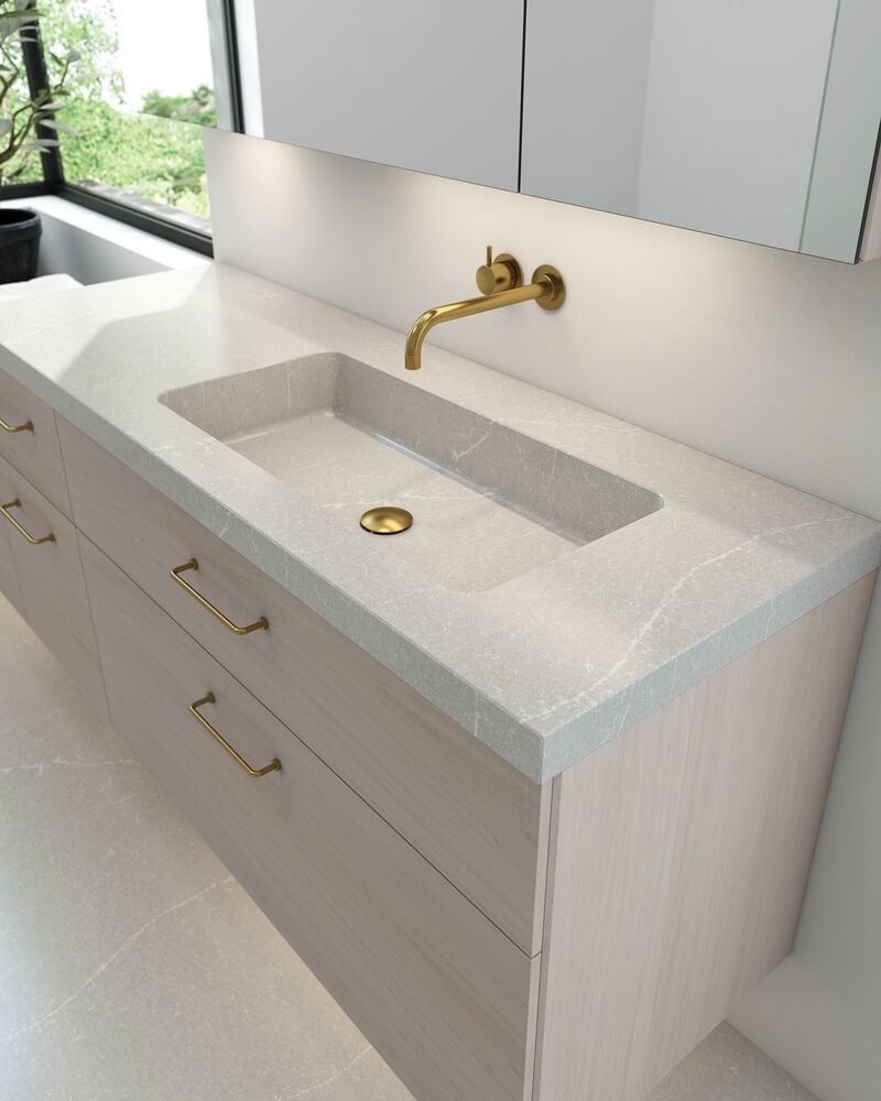The Dansani Calidris Unique worktop, which is made from Silestone, is an impressive fusion of aesthetics and durability that will transform your bathroom. As well as being beautiful to look at, this worktop is made from durable Silestone that will withstand the rigours of daily use while retaining its beauty. The worktop is available in custom sizes, so you can tailor the countertop to fit your needs and your bathroom exactly. The colour of the worktop may differ from the image shown, so we recommend that you see a sample at a retailer before your purchase.