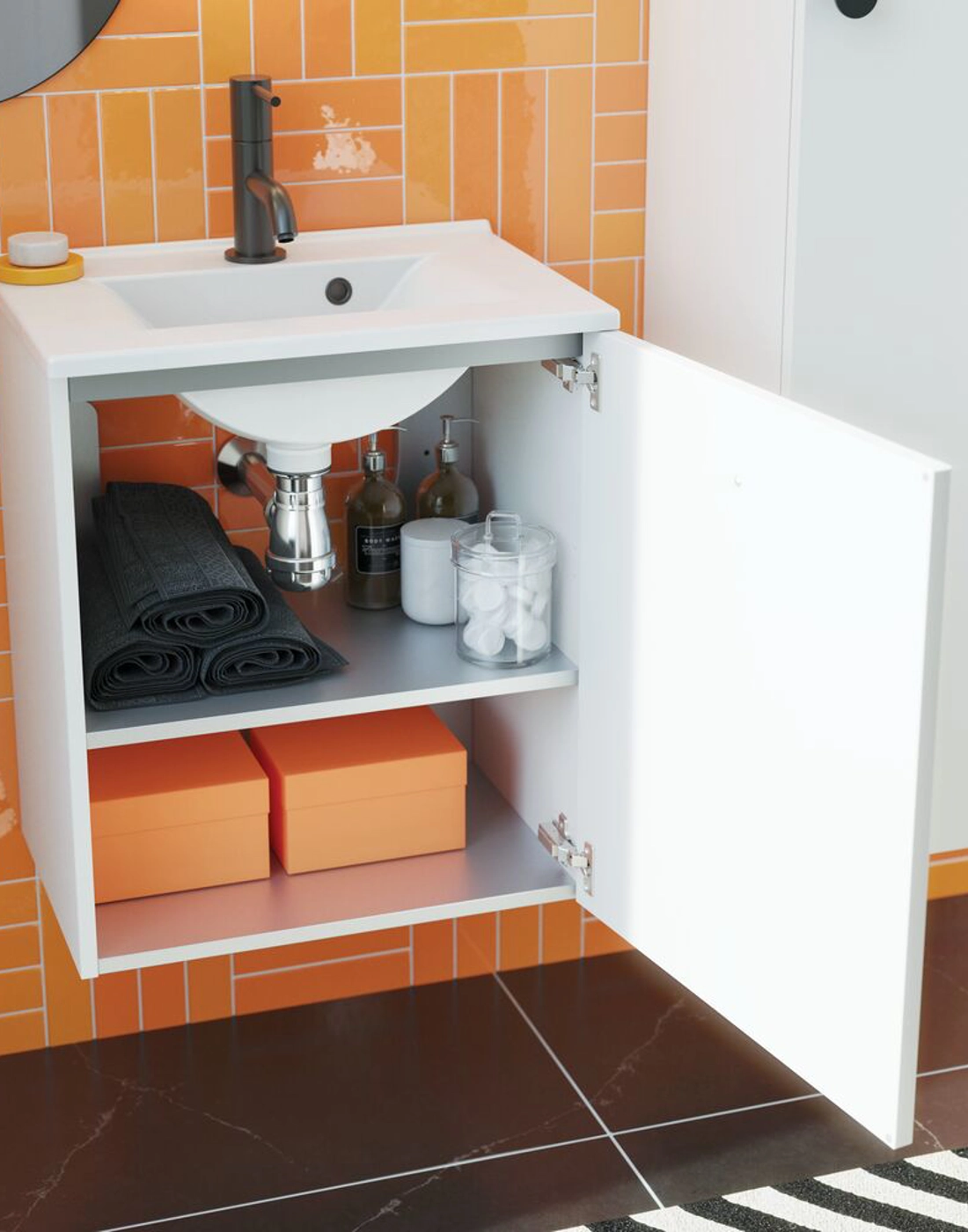 The Dansani Mido+ vanity unit with doors is only 35cm projection, making it perfect for those with limited bathroom space. Dansani Mido+ is great value for money, and even though Mido+ is our entry level range, there is no compromise on design or quality. Behind the practical doors plenty of space is available. All Mido+ cabinets come with the classic Base handle in chrome. You can choose a different handle for a different look, but remember that it must be ordered together with your furniture.