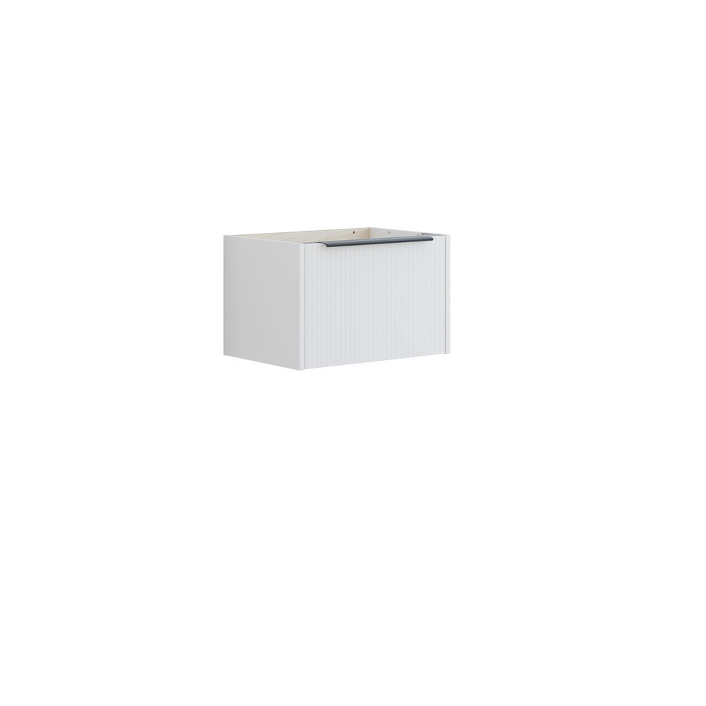 This vanity unit combines functionality and style with its 2 spacious drawers and an elegant striped front. Available in white, sand or light blue, this cabinet will give your bathroom a modern and unique look. The drawers offer plenty of storage space and the handles are fitted and ready to use.