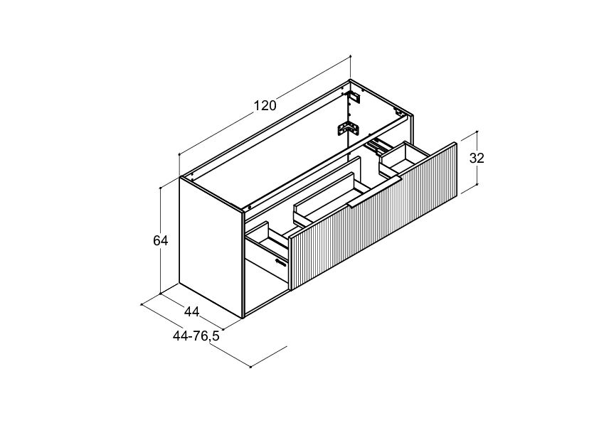 Vanity unit with 1 drawer, open shelf and fluted front