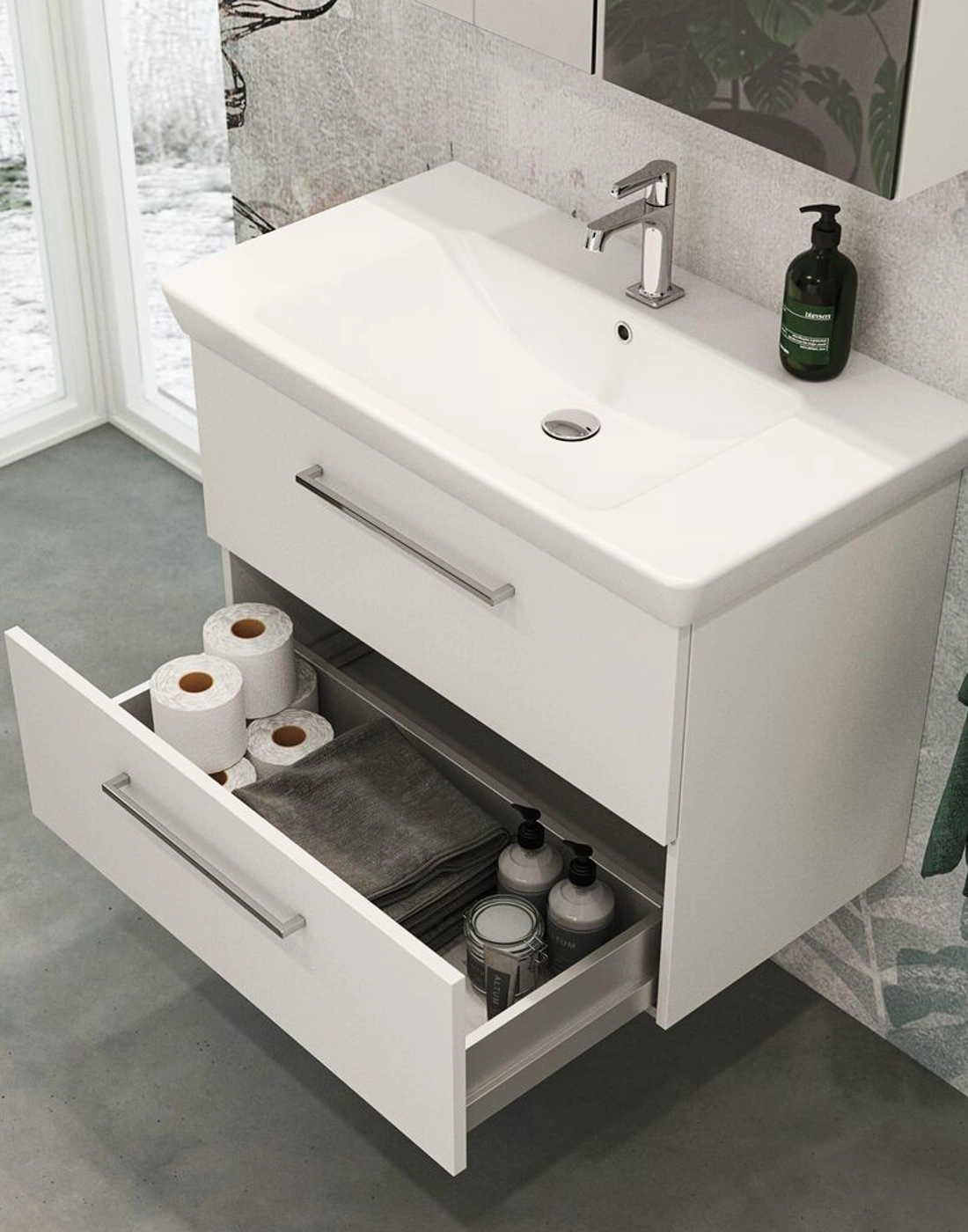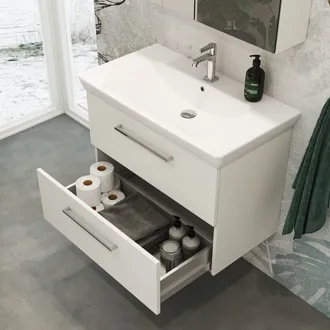 Upgrade your bathroom with the Dansani Mido+ 1-drawer vanity unit - here in a projection of 44cm. This vanity unit gives you the extra storage space you need without compromising on design and style. With soft closing, quality materials and a streamlined look, this vanity unit is the perfect combination of functionality and elegance. Create an organised and stylish atmosphere in your bathroom with Dansani Mido+. All Mido+ cabinets come with the classic Base handle in chrome. You can choose a different handle for a different look, but remember that it must be ordered together with your furniture. Remember to add the little practical things to your bathroom furniture that you will enjoy on a daily basis. For example, lights and drawer dividers in drawers.