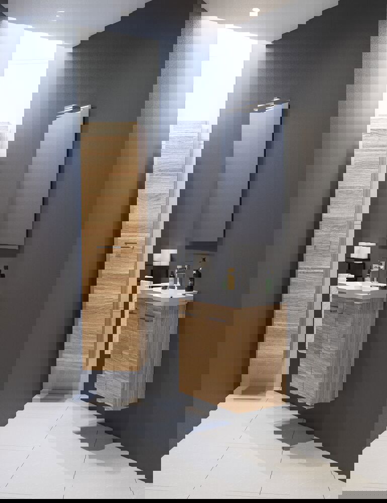 The Dansani Mido+ vanity unit with doors is only 35cm projection, making it perfect for those with limited bathroom space. Dansani Mido+ is great value for money, and even though Mido+ is our entry level range, there is no compromise on design or quality. Behind the practical doors plenty of space is available. All Mido+ cabinets come with the classic Base handle in chrome. You can choose a different handle for a different look, but remember that it must be ordered together with your furniture.