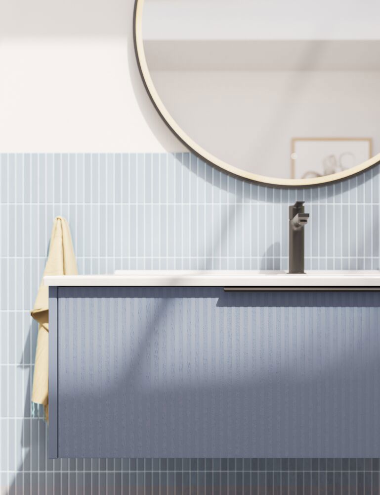 This vanity unit combines functionality and style with its 2 spacious drawers and an elegant striped front. Available in white, sand or light blue, this cabinet will give your bathroom a modern and unique look. The drawers offer plenty of storage space and the handles are fitted and ready to use.