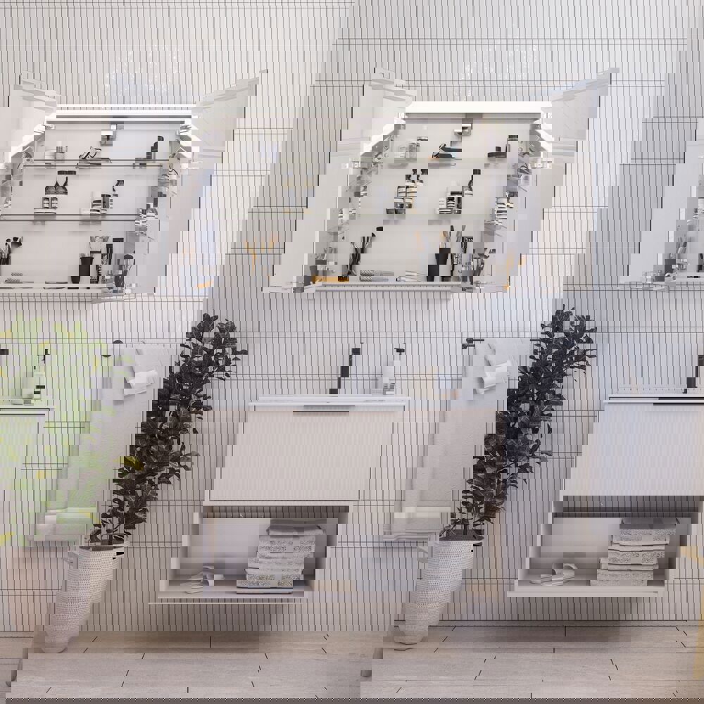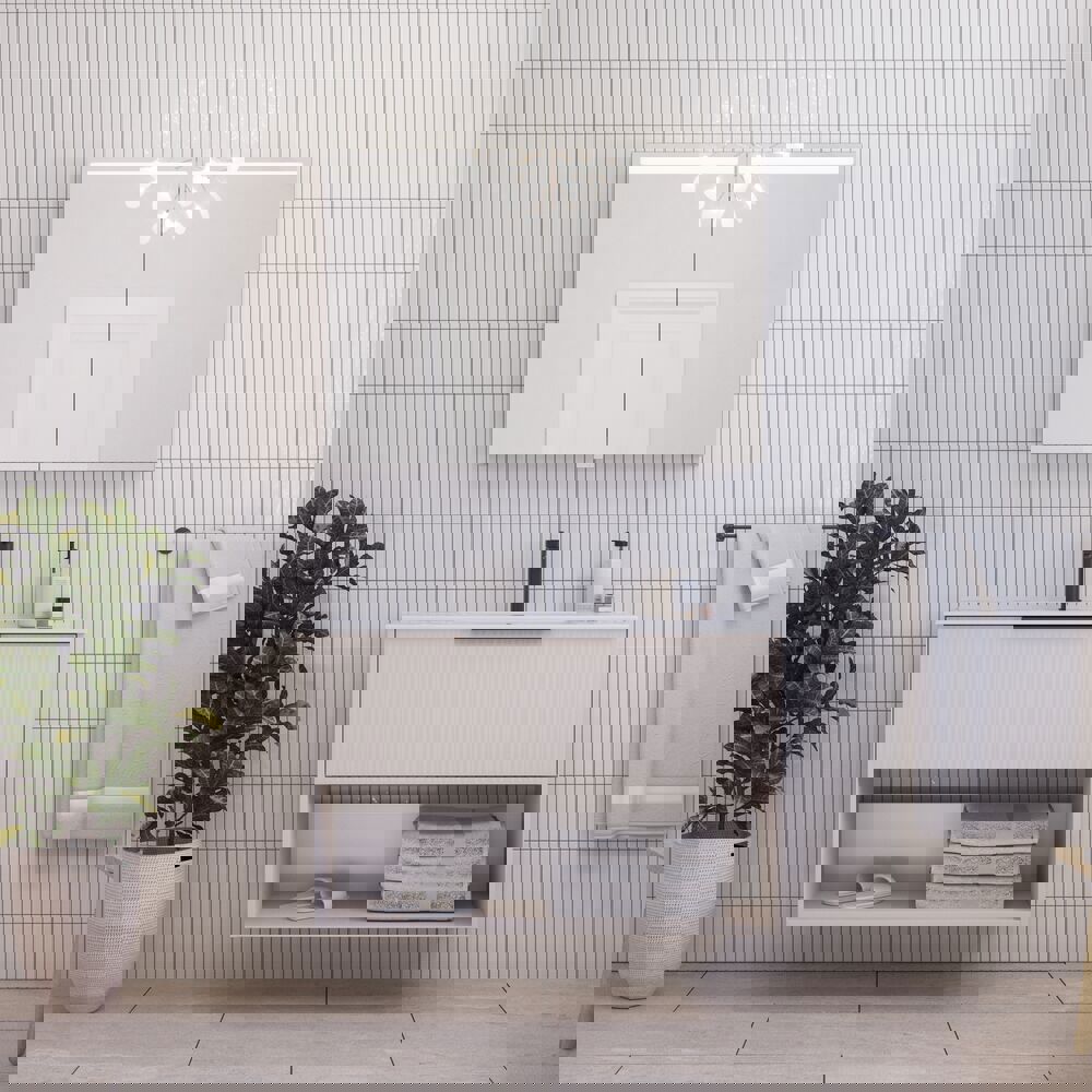 This vanity unit combines functionality and style with its 2 spacious drawers and an elegant striped front. Available in white, sand or light blue, this cabinet will give your bathroom a modern and unique look. The drawers offer plenty of storage space and the handles are fitted and ready to use.