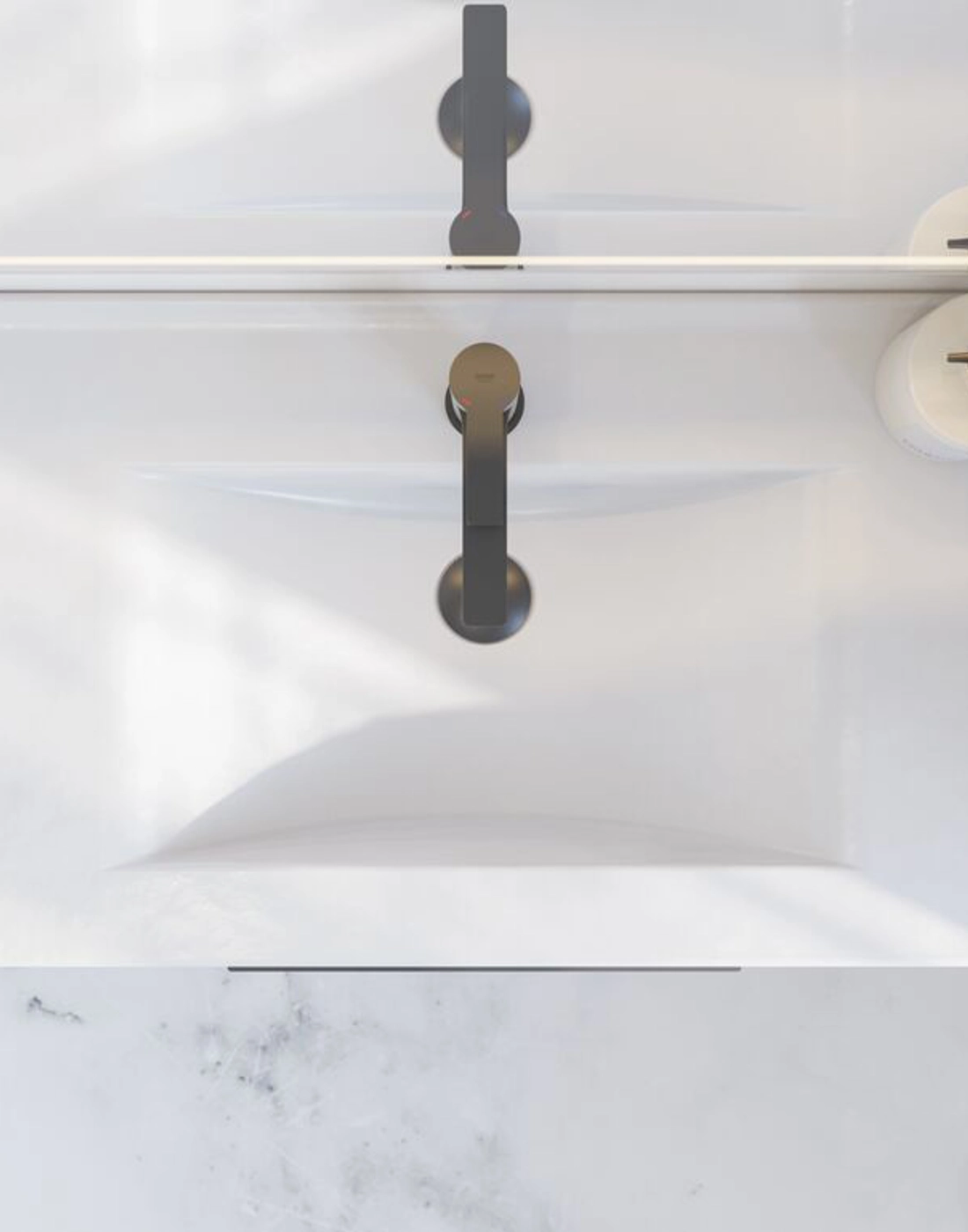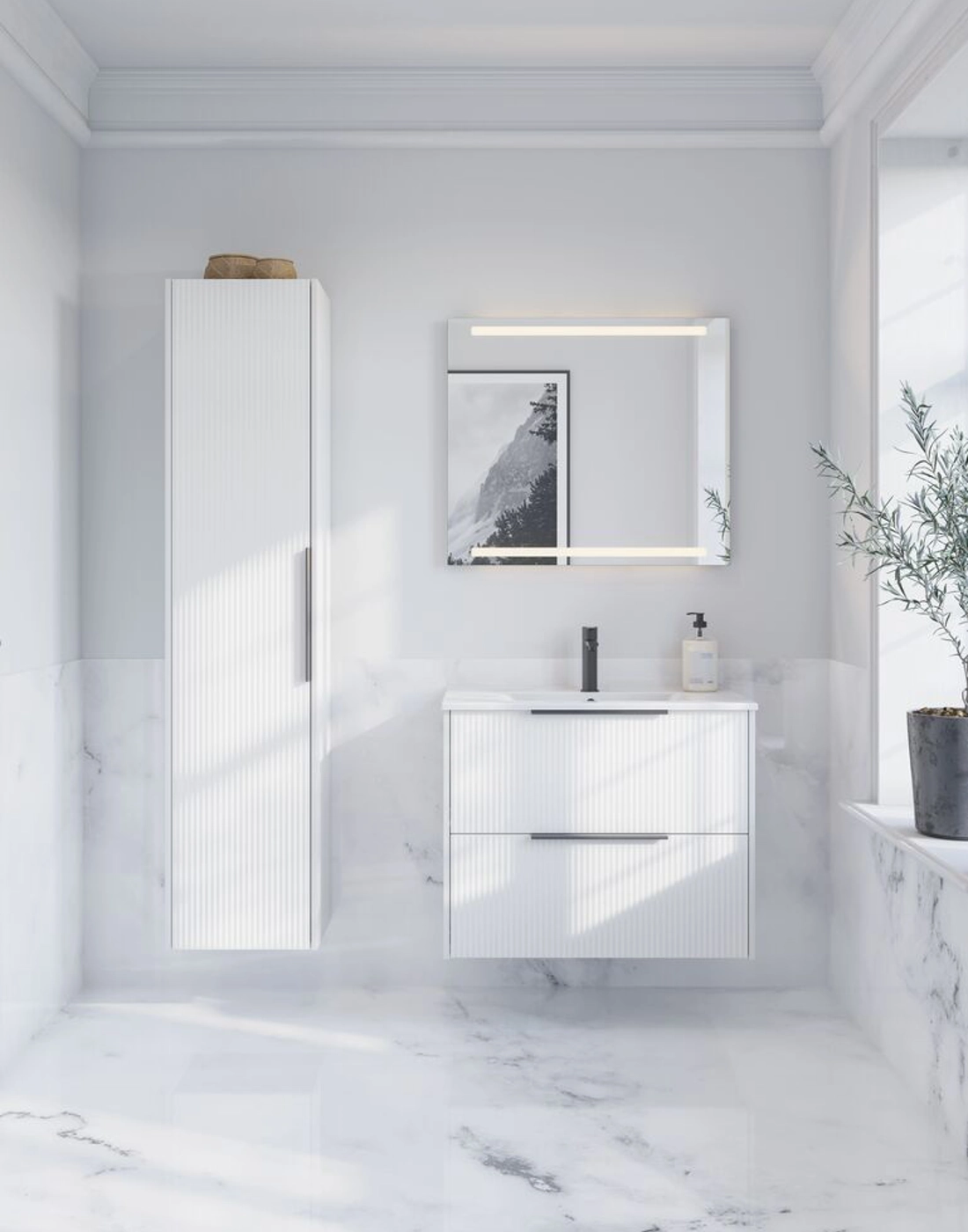 This vanity unit combines functionality and style with its 2 spacious drawers and an elegant striped front. Available in white, sand or light blue, this cabinet will give your bathroom a modern and unique look. The drawers offer plenty of storage space and the handles are fitted and ready to use.