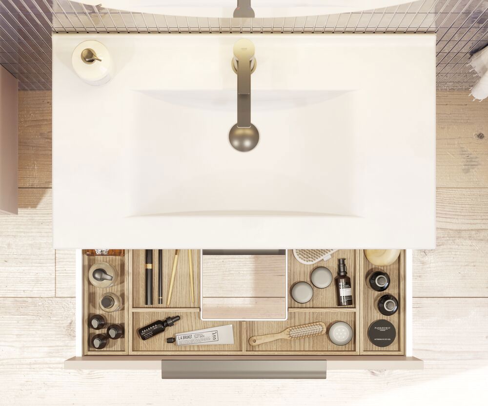 Vanity unit with 2 drawers and fluted front