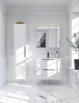 This vanity unit combines functionality and style with its 2 spacious drawers and an elegant striped front. Available in white, sand or light blue, this cabinet will give your bathroom a modern and unique look. The drawers offer plenty of storage space and the handles are fitted and ready to use.