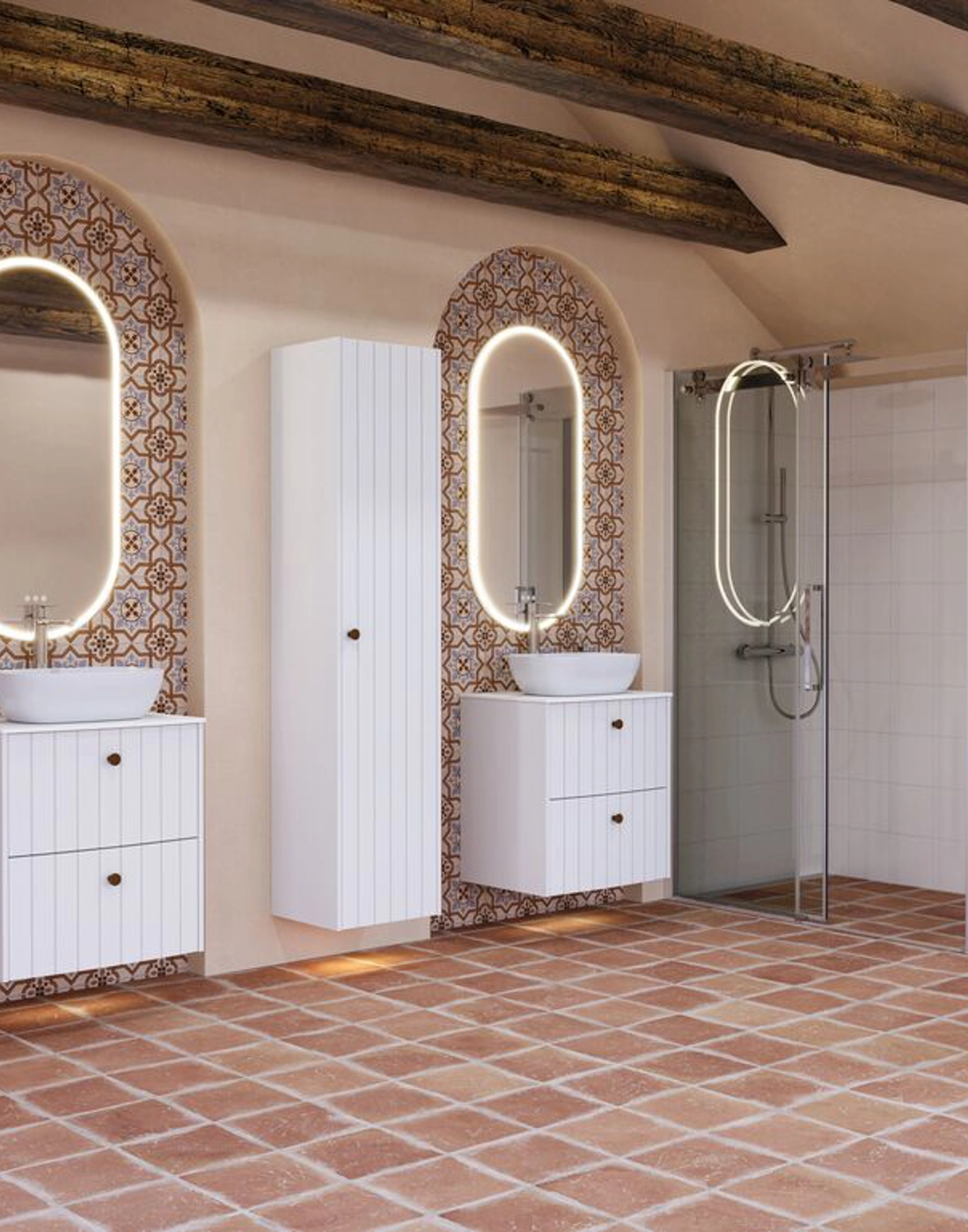 The 2-drawer vanity units offer a charming retro design for your bathroom. The curved fronts have beautiful grooves providing plenty of character. The units are available in many different finishes, so you can choose the colour that best suits your personal style. In addition to their beautiful appearance, the units are also practical with two spacious drawers for storing your essentials. Add timeless elegance to your bathroom with the vanity units and enjoy the unique touch they bring to the space. NB: There is a start-up fee (BI2) for products with bespoke colour. It is an one-off surcharge per bespoke colour regardless number of products. Remember to add the little practical things to your bathroom furniture that you will enjoy on a daily basis. For example, lights in drawers and cabinets, built-in electrical sockets and dimmed sensor lights under the furniture to guide night-time bathroom visits. Options are ordered at the same time as your furniture.