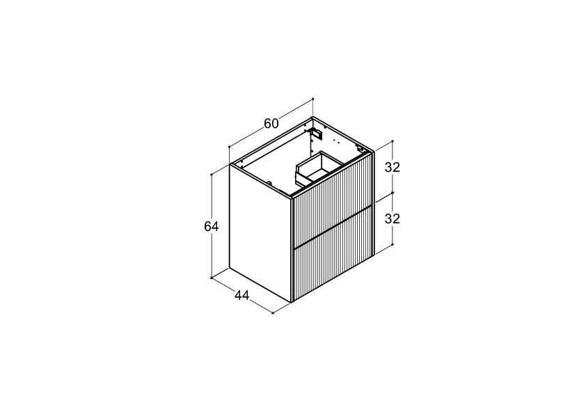 Vanity unit with 2 drawers, fluted