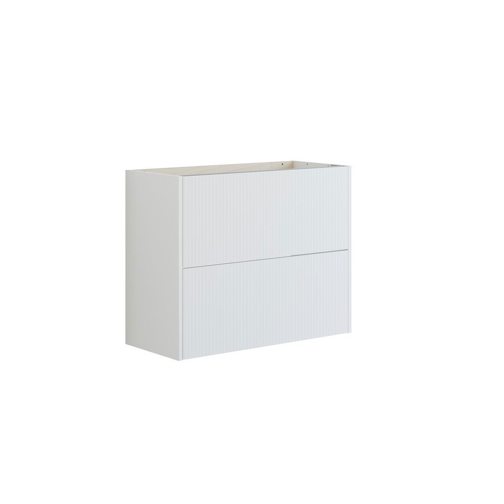 Transform your bathroom into a stylish oasis with the vanity unit with striped front. The elegant vertical stripes give the cabinet a vibrant and modern look that stands out and adds character to the room. With two spacious drawers, each 32 cm high, you'll have plenty of space to organize your bathroom essentials, while the drawers slide easily and give you a full overview. Choose from white, sand or light blue - colors that each create their own mood. The white front gives a timeless and classic look, sand adds warmth and naturalness, while the light blue brings freshness and lightness to the interior. The stylish design combines functionality with aesthetics, making this vanity unit an obvious choice if you want to combine practical storage with a personal and elegant look. Remember to add the little practical things to your bathroom furniture that you will enjoy on a daily basis. For example, lights in drawers and cabinets, built-in electrical sockets and dimmed sensor lights under the furniture to guide night-time bathroom visits. Options are ordered at the same time as your furniture.