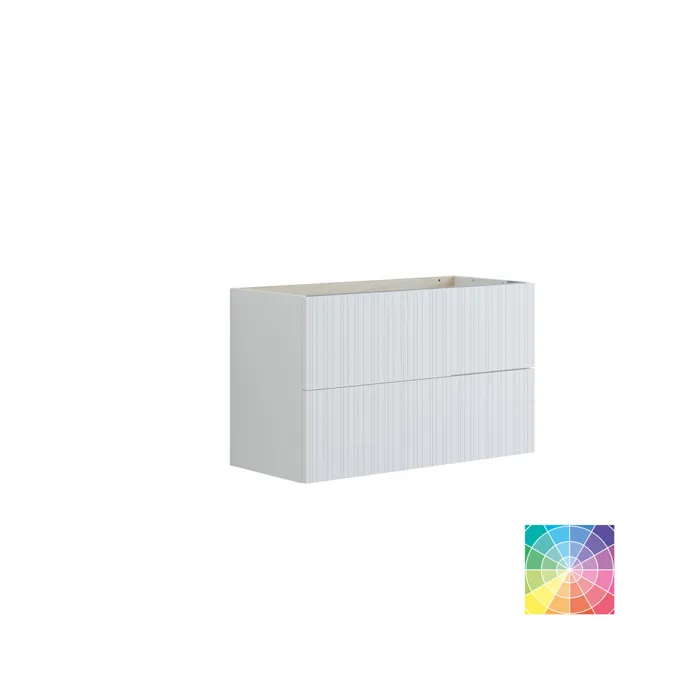 The vanity unit with 2 drawers is designed for those who desire both function and style in the bathroom. Despite its depth of only 35 cm, the spacious drawers provide ample room for all your daily necessities. With its fluted front, the unit adds a subtle yet modern texture to your decor, highlighting the unique expression of the cabinet. Choose from several beautiful colours to upgrade your bathroom with style and quality. NB: There is a start-up fee (BI2) for products with bespoke colour. It is an one-off surcharge per bespoke colour regardless number of products. Remember to add the little practical things to your bathroom furniture that you will enjoy on a daily basis. For example, lights in drawers and cabinets, built-in electrical sockets and dimmed sensor lights under the furniture to guide night-time bathroom visits. Options are ordered at the same time as your furniture.