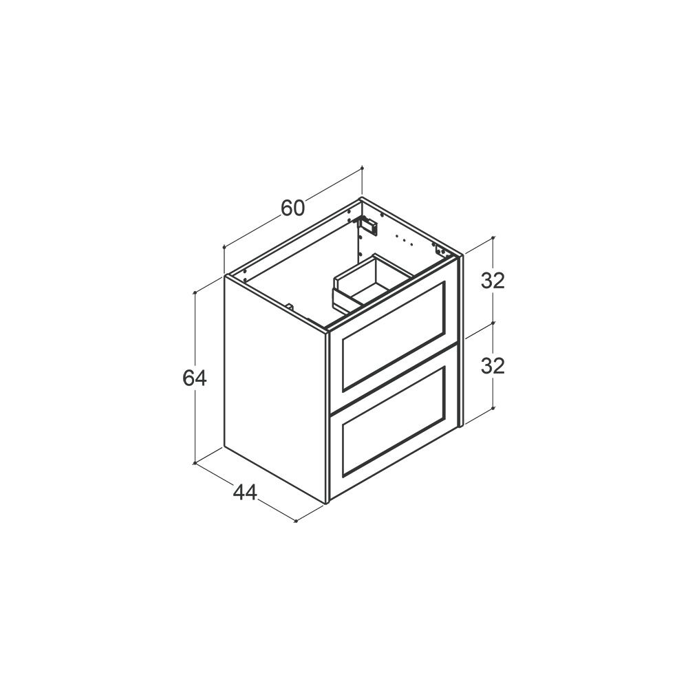 Refresh your bathroom with the vanity unit featuring a framed front. This unit has two spacious drawers, each 32 cm in height, offering ample storage for your bathroom products. The framed front adds a modern and stylish dimension to your bathroom, serving as an aesthetic addition. Its timeless design ensures that the unit fits into any decor, contributing to a well-organized and elegant atmosphere. NB: There is a start-up fee (BI2) for products with bespoke colour. It is an one-off surcharge per bespoke colour regardless number of products. Remember to add the little practical things to your bathroom furniture that you will enjoy on a daily basis. For example, lights in drawers and cabinets, built-in electrical sockets and dimmed sensor lights under the furniture to guide night-time bathroom visits. Options are ordered at the same time as your furniture.