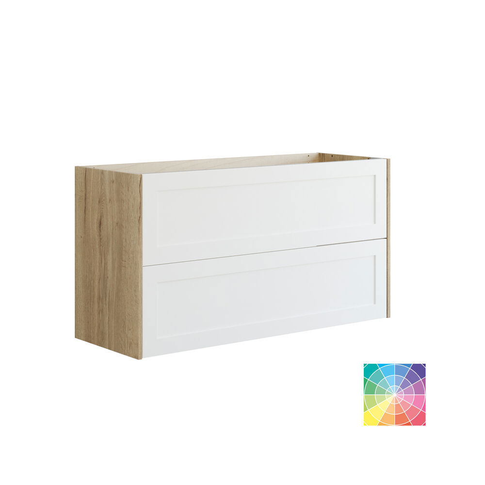 Refresh your bathroom with the vanity unit featuring a framed front. This unit has two spacious drawers, each 32 cm in height, offering ample storage for your bathroom products. The framed front adds a modern and stylish dimension to your bathroom, serving as an aesthetic addition. Its timeless design ensures that the unit fits into any decor, contributing to a well-organized and elegant atmosphere. NB: There is a start-up fee (BI2) for products with bespoke colour. It is an one-off surcharge per bespoke colour regardless number of products. Remember to add the little practical things to your bathroom furniture that you will enjoy on a daily basis. For example, lights in drawers and cabinets, built-in electrical sockets and dimmed sensor lights under the furniture to guide night-time bathroom visits. Options are ordered at the same time as your furniture.