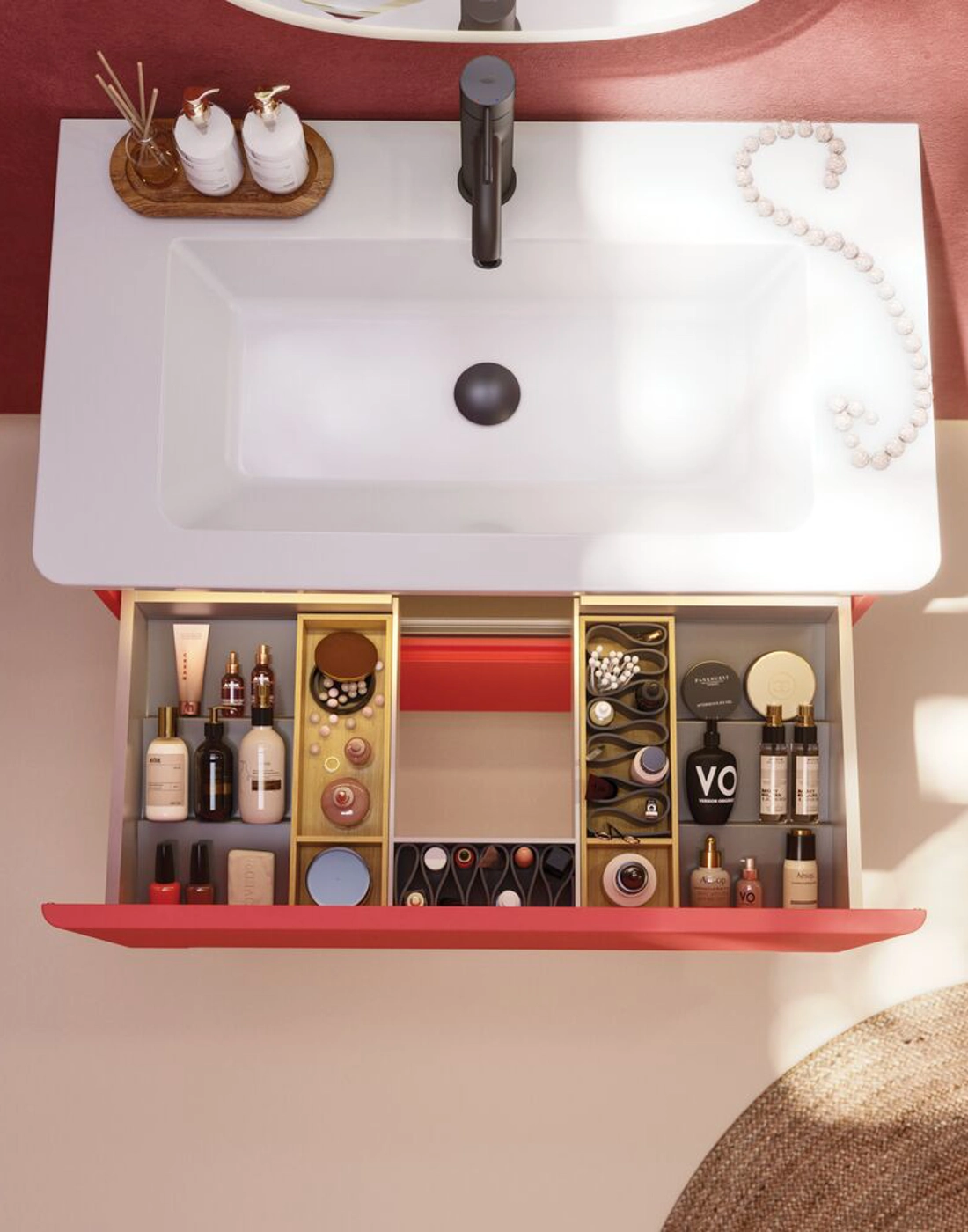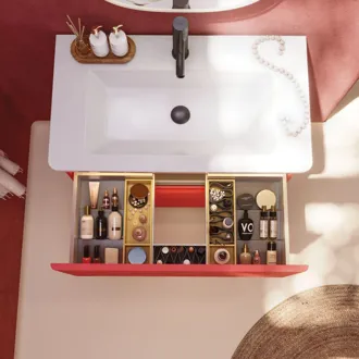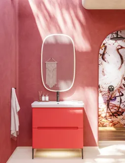 Enhance your bathroom with an elegant vanity unit that combines soft, rounded shapes with a streamlined appearance—perfect for a feminine vintage look. The modern front retains the charm and simplicity of classic dressers, creating a timeless atmosphere with a touch of elegance. The integrated handles in the grooved front emphasize the minimalist design, and you can choose between a clean white color or a unique shade that perfectly suits your personal style. As an extra detail, the unit is available with decorative black legs, giving the bathroom a light and airy feel. NB: There is a start-up fee (BI2) for products with bespoke colour. It is an one-off surcharge per bespoke colour regardless number of products. Remember to add the little practical things to your bathroom furniture that you will enjoy on a daily basis. For example, lights in drawers and cabinets, built-in electrical sockets and dimmed sensor lights under the furniture to guide night-time bathroom visits. Options are ordered at the same time as your furniture.