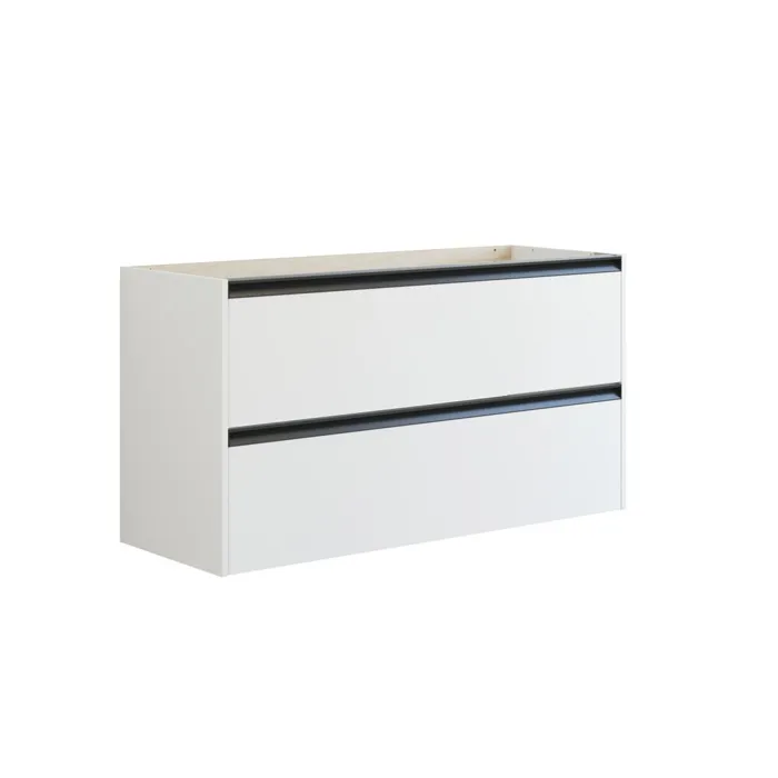 Give your bathroom a modern edge with the vanity unit with an integrated handle. This unit has two deep drawers, each 32 cm high, providing ample storage space for your daily necessities. The handle comes in black as standard, adding a stylish contrast, and if you choose a custom color for the vanity unit, the handle will harmoniously match the unit’s tone. This minimalist design creates an elegant atmosphere and makes it easy to keep your bathroom organized. NB: There is a start-up fee (BI2) for products with bespoke colour. It is an one-off surcharge per bespoke colour regardless number of products. Remember to add the little practical things to your bathroom furniture that you will enjoy on a daily basis. For example, lights in drawers and cabinets, built-in electrical sockets and dimmed sensor lights under the furniture to guide night-time bathroom visits. Options are ordered at the same time as your furniture.