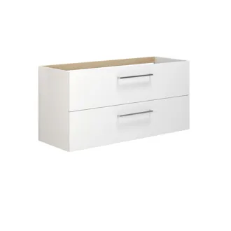 Here's a beautiful vanity unit from Dansani Mido+ with 2 drawers and designed for use with either a single or a double basin. The vanity unit is 120cm wide and is the perfect solution if you have extra space in your bathroom. You can use either a 120cm single basin or a 120cm double basin to suit your requirements. With a double basin, you can have two people at the basin at the same time, and you can even each have your own basin. As mentioned, the vanity unit is available with 2 drawers for extra storage of all your bathroom items. All Mido+ cabinets come with the classic Base handle in chrome. You can choose a different handle for a different look, but remember that it must be ordered together with your furniture. Remember to add the little practical things to your bathroom furniture that you will enjoy on a daily basis. For example, lights and drawer dividers in drawers.