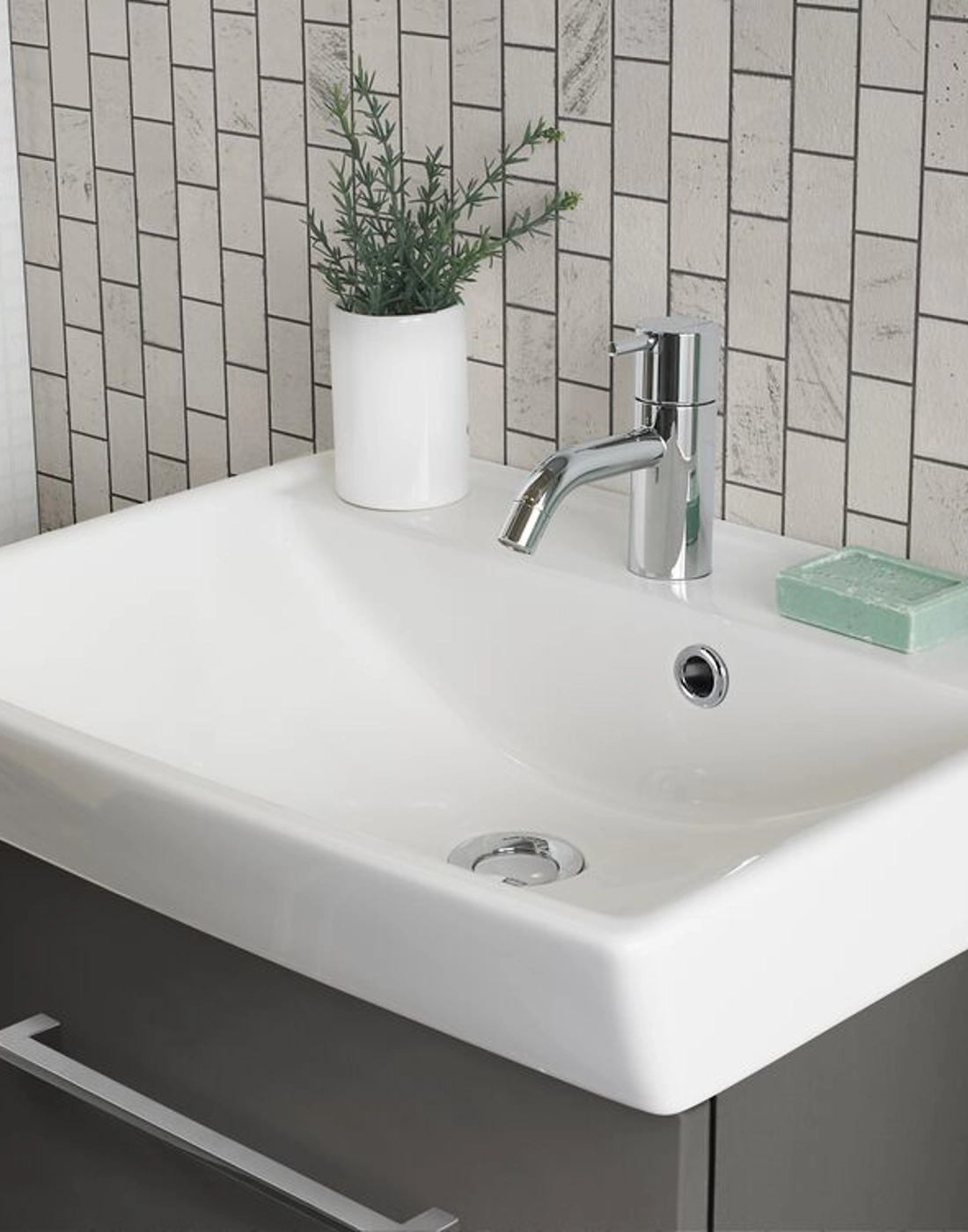 Dansani Mido+ is the feeling of luxury at an affordable price, and here you get a 2-drawer vanity unit. This beautiful vanity unit is only 35cm projection and is therefore designed to fit perfectly into smaller bathrooms or guest bathrooms. The Dansani Mido+ vanity unit is Danish design at an attractive price, and of course you'll also find several smart options such as drawer lighting and wooden trays for storage. With the Dansani Mido+ 2-drawer vanity unit, you not only get functionality and storage, but also the freedom to create your dream bathroom. Please note that this vanity unit has two cut-outs to suit floor exiting wastes. All Mido+ cabinets come with the classic Base handle in chrome. You can choose a different handle for a different look, but remember that it must be ordered together with your furniture. Remember to add the little practical things to your bathroom furniture that you will enjoy on a daily basis. For example, lights and drawer dividers in drawers.