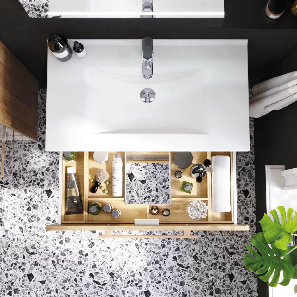 A luxurious choice for those who want extra space and design in the bathroom. This vanity unit has two large drawers that give you ample storage and overview. The drawers pull out fully and are equipped with soft, silent glides that emphasize the high quality of the furniture. The top drawer has a smart cut-out for the water trap, so everything is ready for installation. A functional piece of furniture in beautiful Danish design - built to last and delight for many years.