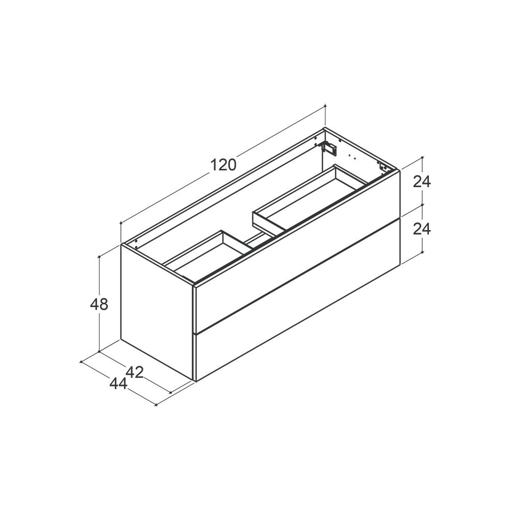The 2-drawer vanity unit is a simple upgrade for your bathroom. This stylish unit stands 48 cm high and has a projection of 44 cm, making it perfect for organizing your belongings. Choose from a variety of colors to match your style. The vanity unit offers intelligent storage for your bathroom products, helping you stay organized with ease. With the 2-drawer vanity unit, you get both functionality and a beautiful addition to your bathroom. Enhance your space with elegance and organization using this stunning vanity unit. NB: There is a start-up fee (BI2) for products with bespoke colour. It is an one-off surcharge per bespoke colour regardless number of products. Remember to add the little practical things to your bathroom furniture that you will enjoy on a daily basis. For example, lights in drawers and cabinets, built-in electrical sockets and dimmed sensor lights under the furniture to guide night-time bathroom visits. Options are ordered at the same time as your furniture.