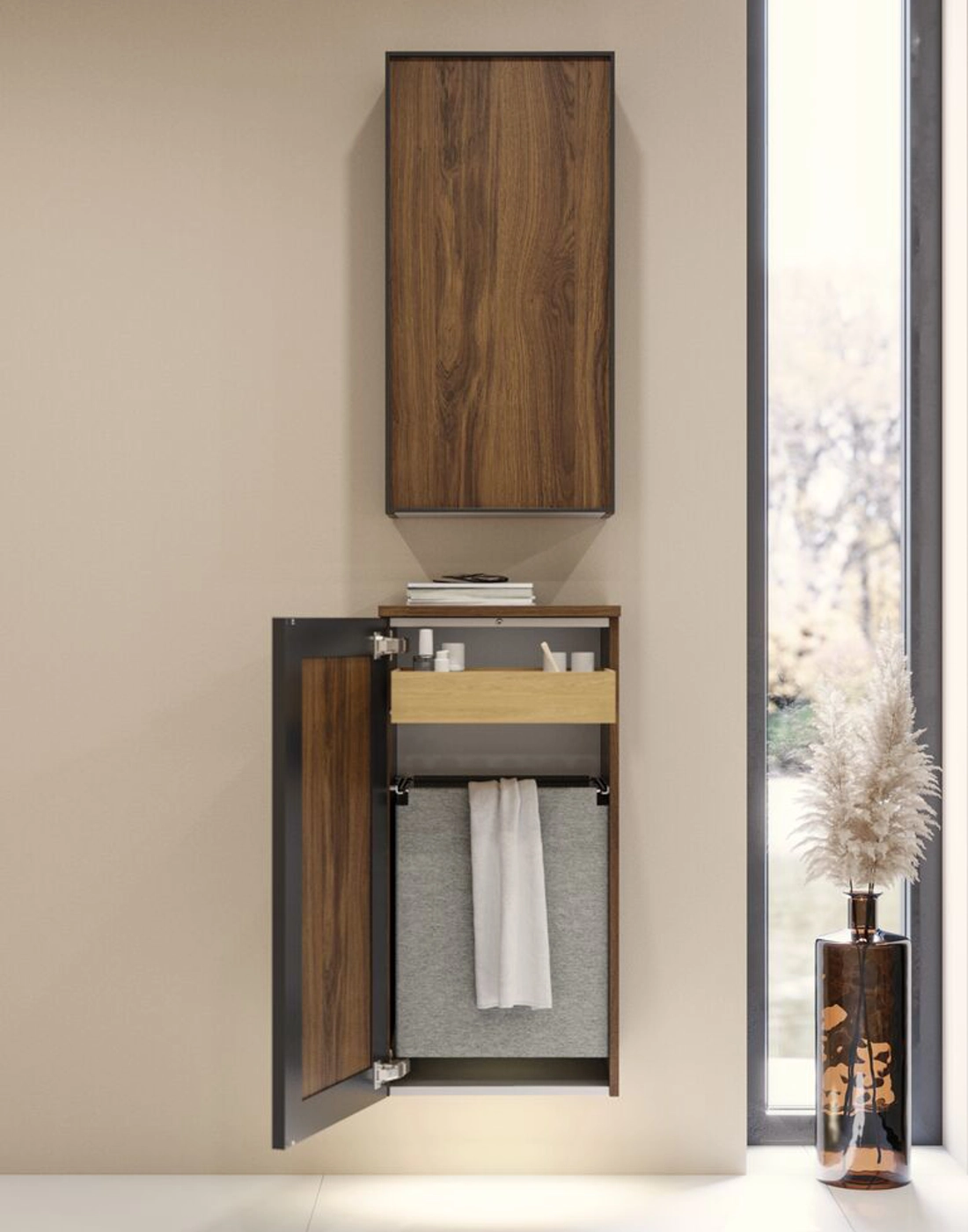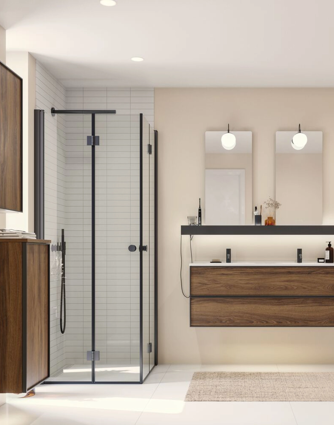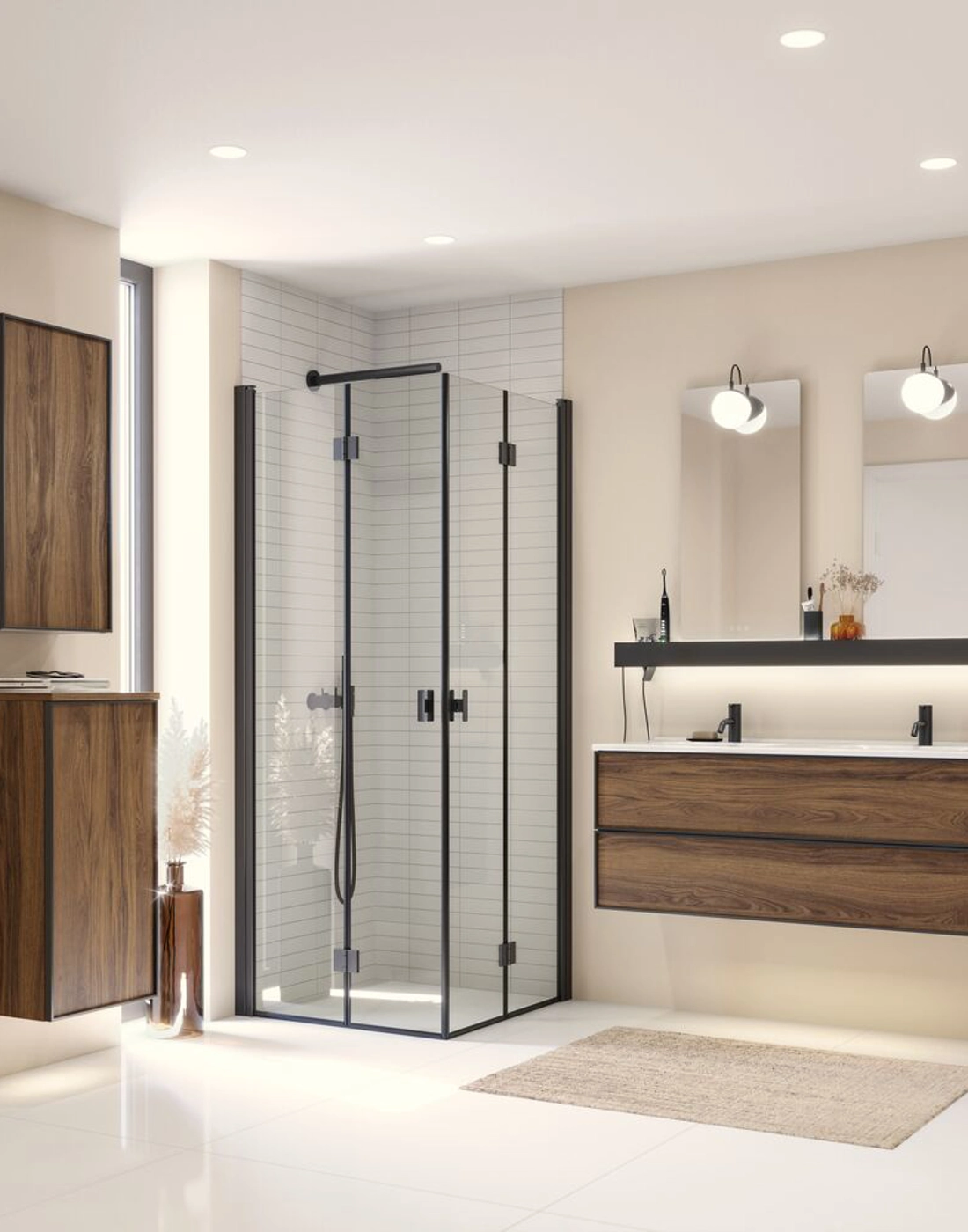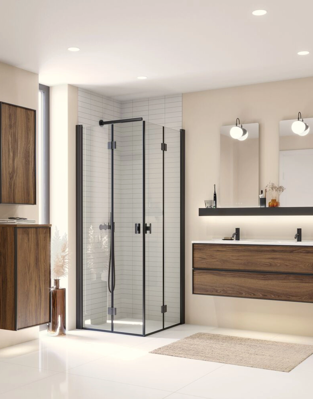 Add extra storage with the Dansani wall cabinet, featuring a black frame and 2 glass shelves, offering a modern and elegant solution for your bathroom. The black frame adds a sophisticated look that fits well into modern bathroom designs. Use the wall cabinet to keep your creams, deodorants, and other essentials organized, ensuring your bathroom always appears tidy and stylish. With multiple color options, you can easily match the cabinet to the rest of your bathroom. NB: There is a start-up fee (BI2) for products with bespoke colour. It is an one-off surcharge per bespoke colour regardless number of products. Remember to add the little practical things to your bathroom furniture that you will enjoy on a daily basis. For example, lights in drawers and cabinets, built-in electrical sockets and dimmed sensor lights under the furniture to guide night-time bathroom visits. Options are ordered at the same time as your furniture.