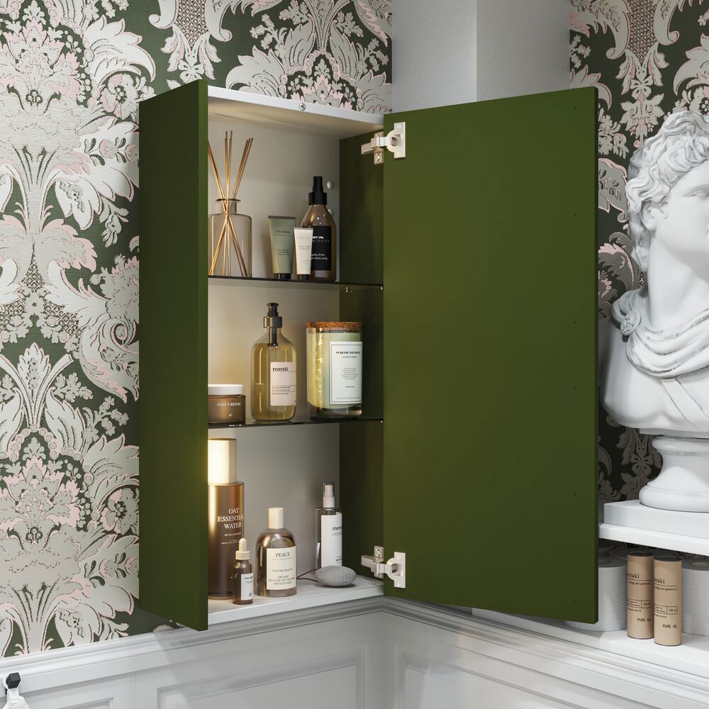 Add a timeless element to your bathroom with a wall cabinet featuring a classic frame front. With its elegant frame and two glass shelves that provide a clear overview of the contents, this cabinet is perfect for keeping your bathroom items organized. The wall cabinet measures 40 cm in width and 19 cm in depth, making it ideal for smaller spaces. Combine it with an open shelf to create a harmonious look, where you can both store and display your favorite products and decorations. NB: There is a start-up fee (BI2) for products with bespoke colour. It is an one-off surcharge per bespoke colour regardless number of products. Remember to add the little practical things to your bathroom furniture that you will enjoy on a daily basis. For example, lights in drawers and cabinets, built-in electrical sockets and dimmed sensor lights under the furniture to guide night-time bathroom visits. Options are ordered at the same time as your furniture.