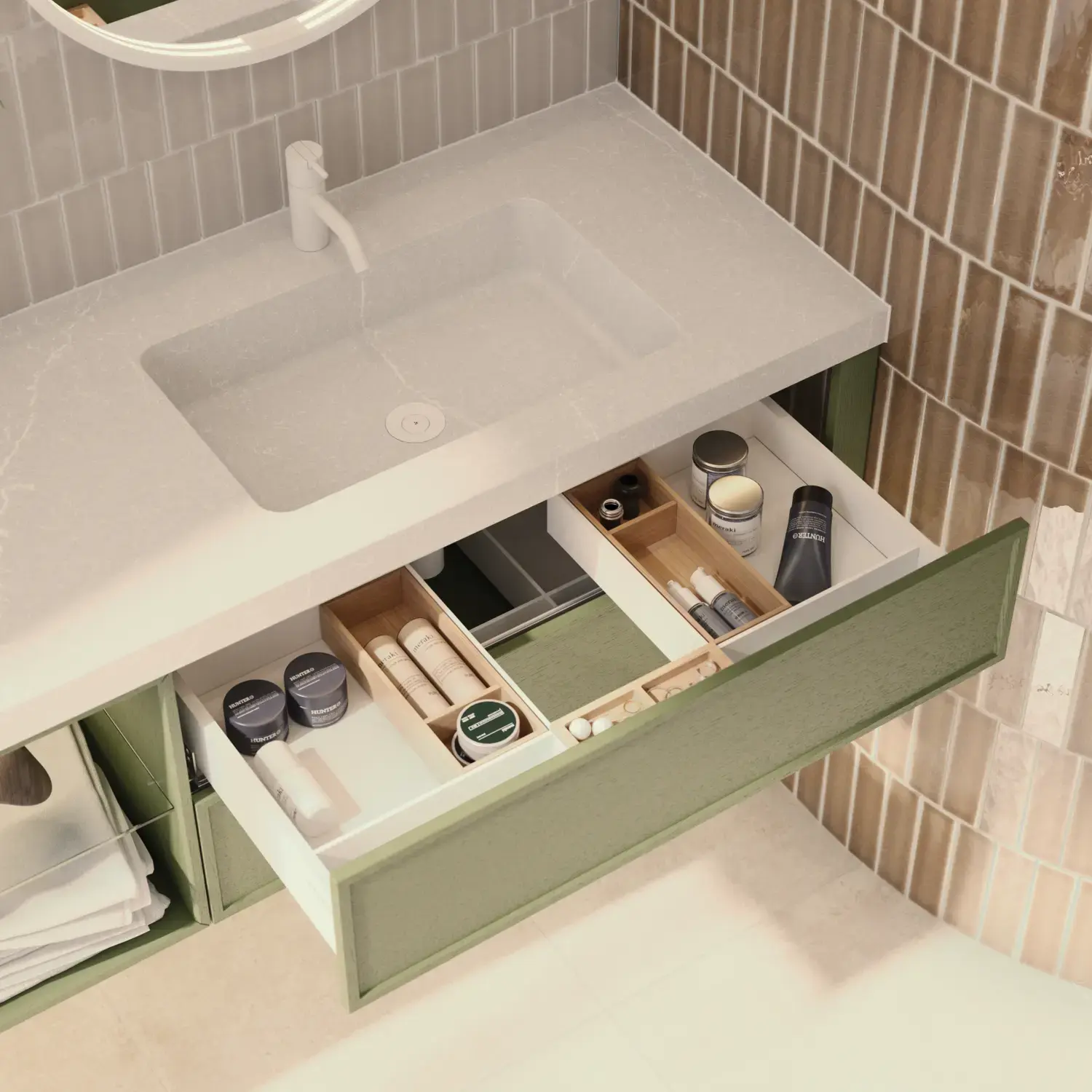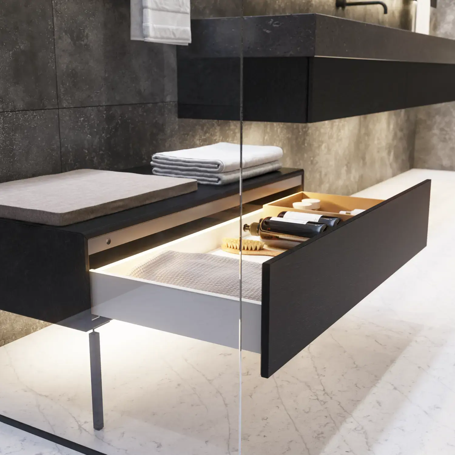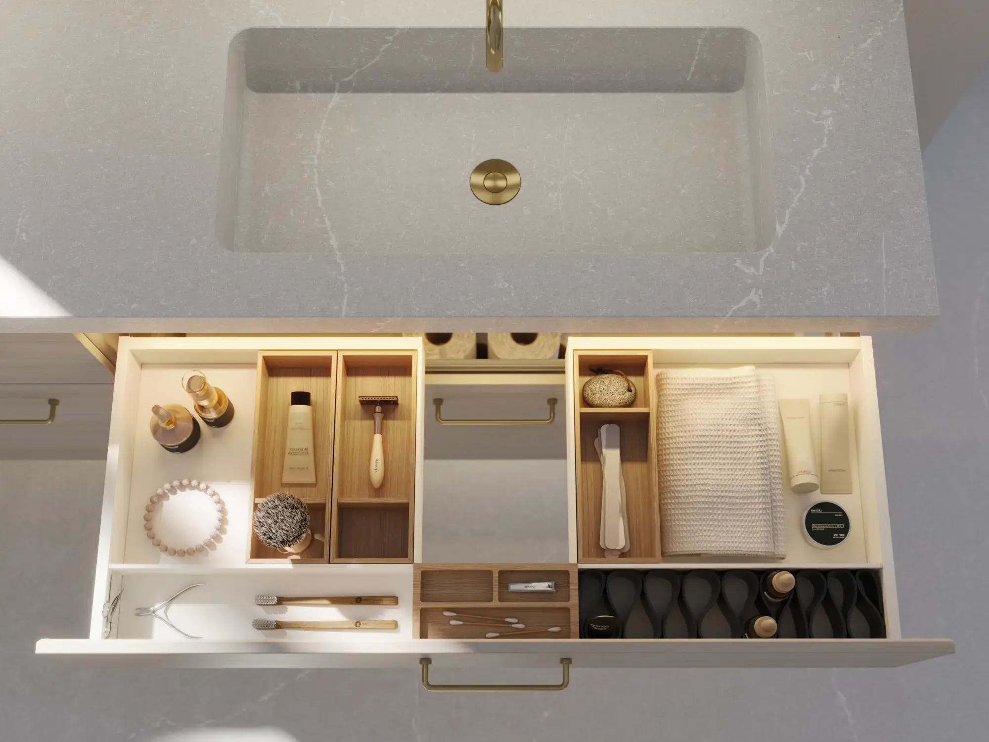 Keep the contents of your cabinets and drawers in order with attractive accessories that make it more fun to use your exclusive bathroom and keep it clean and tidy.