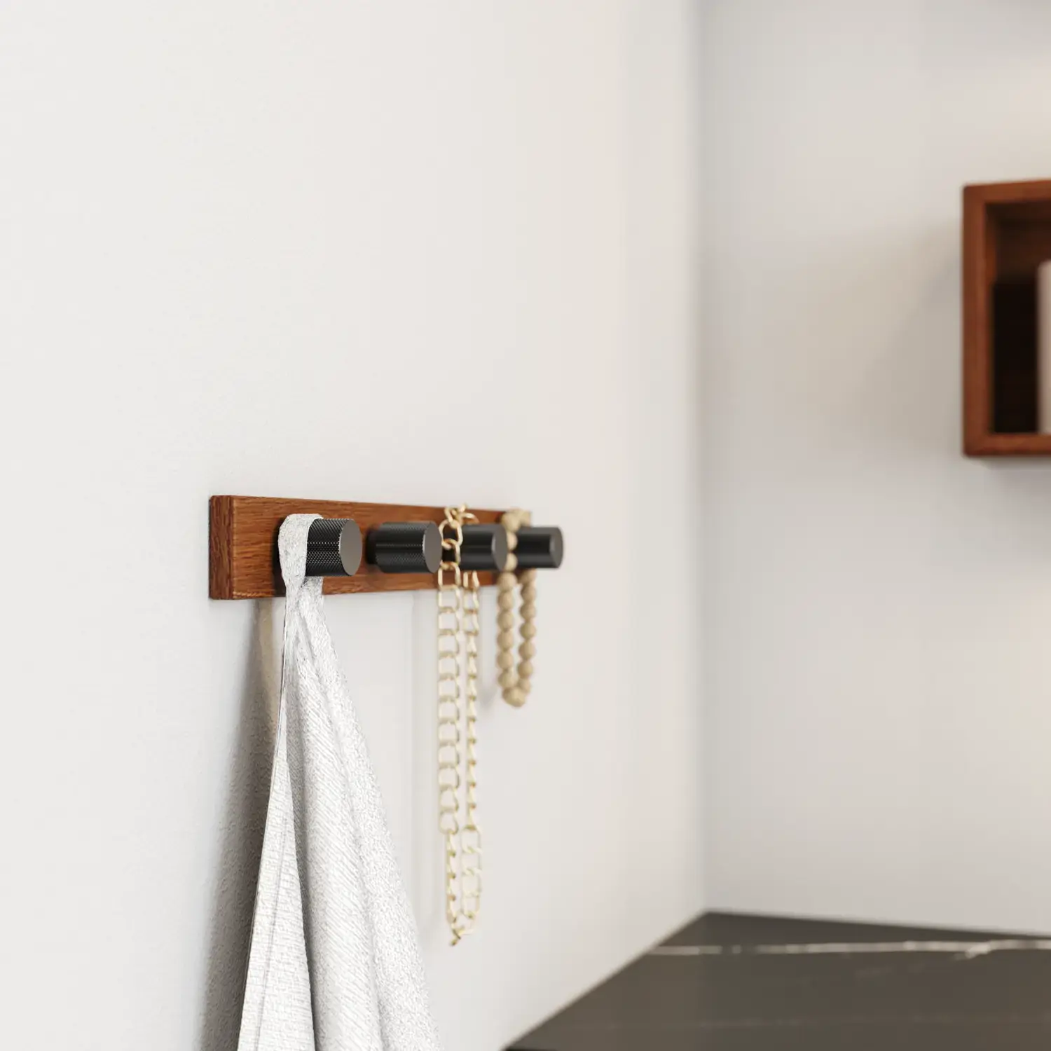 Curves and clean lines in perfect balance – a conversation of shapes, colours and materials that brings harmony to the space. The soft wooden handle invites touch and showcases