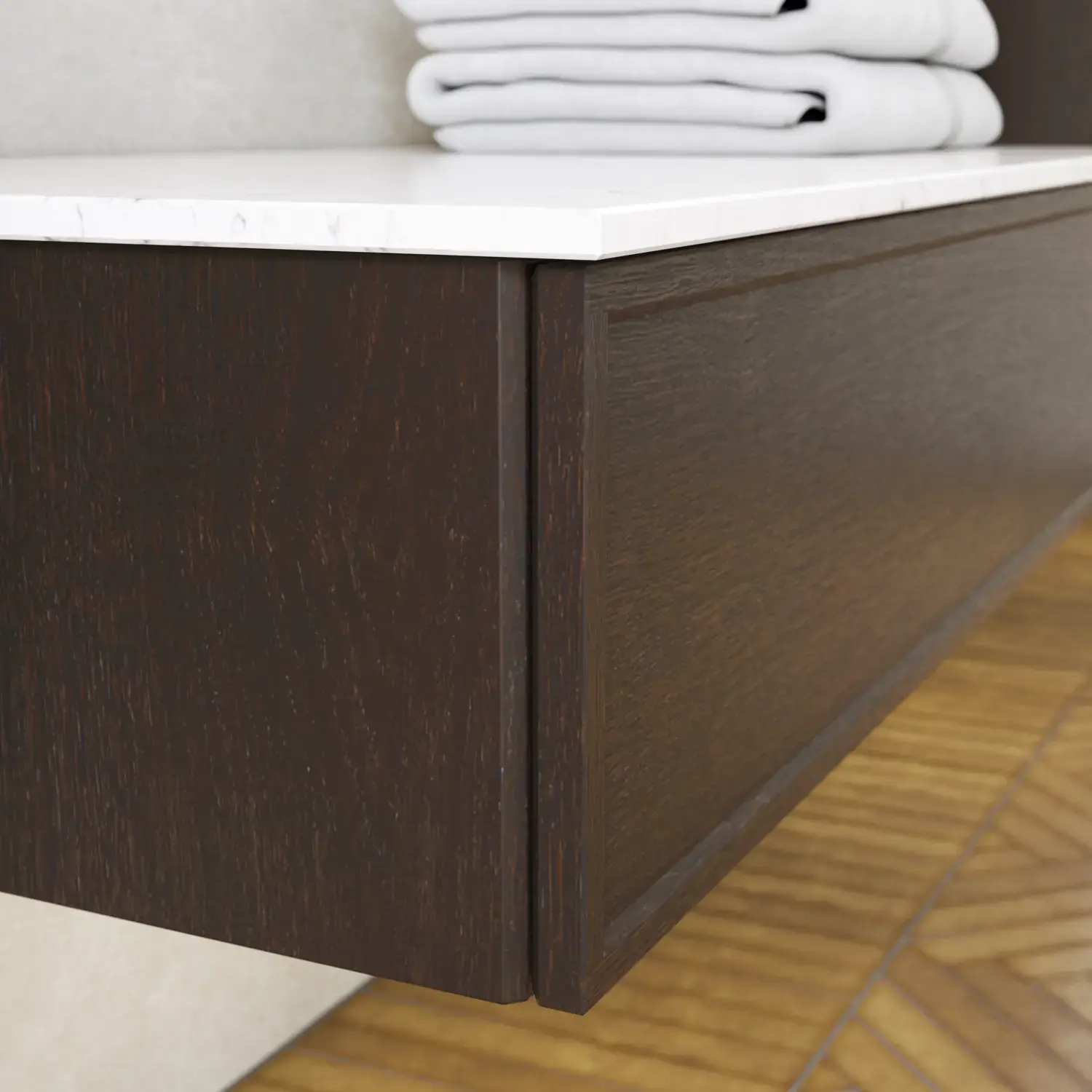 The beautiful basin sets the tone for a modern bathroom, where aesthetics and function go hand in hand. The floating design and the horizontal lines provide a light and architectural balance – an on-trend look that feels both