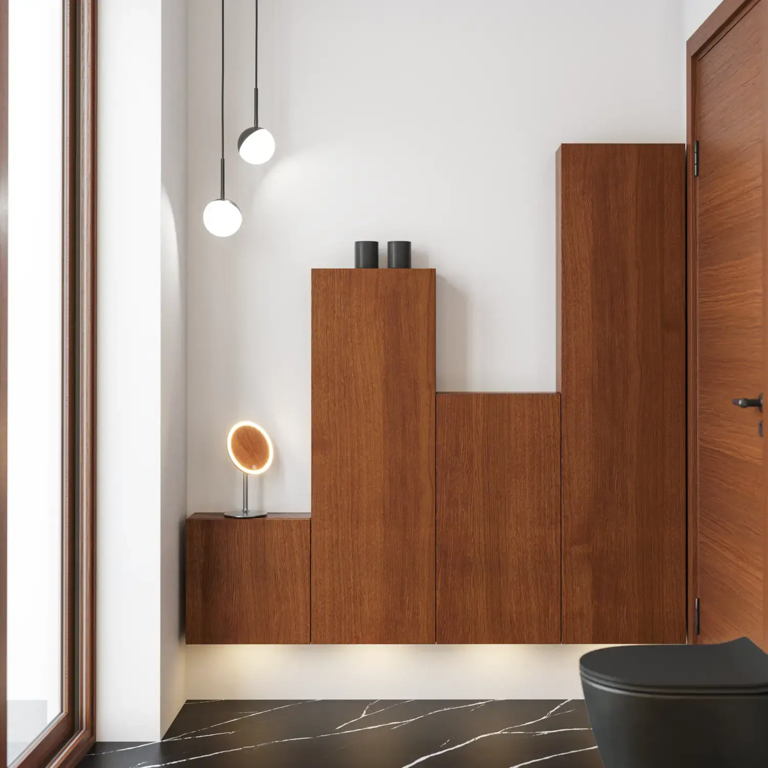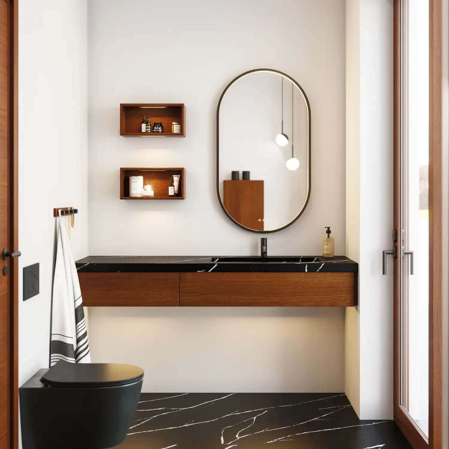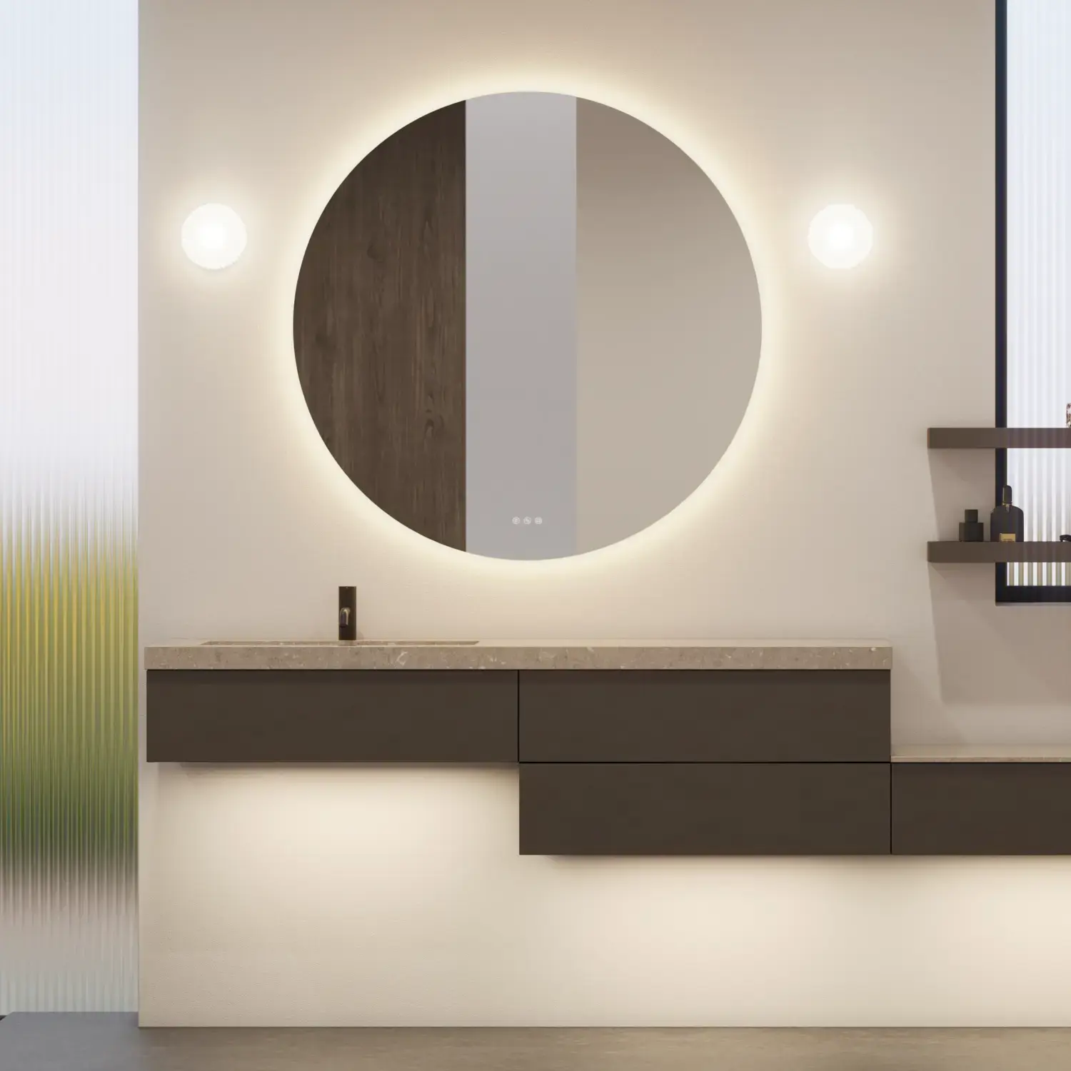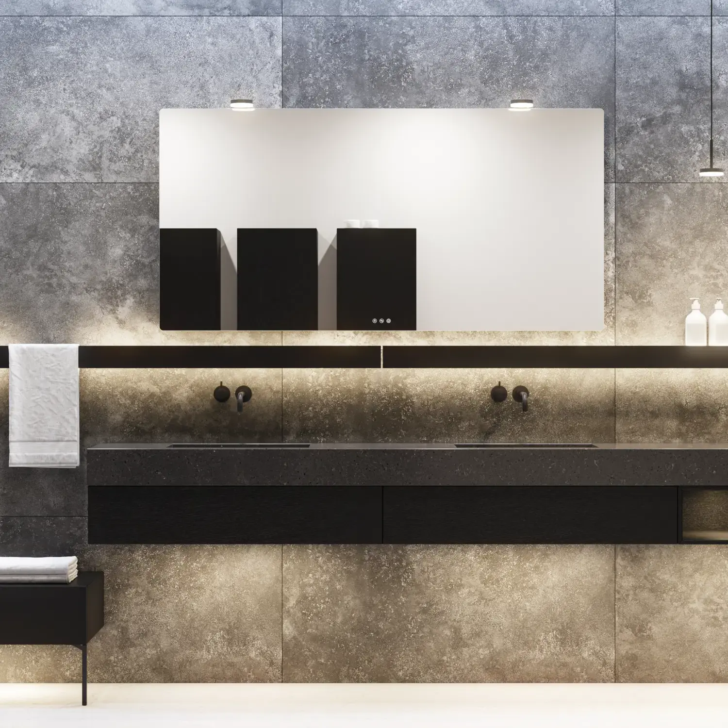 Incl. magnifying mirror, magnetic accessory holder, metal shelf and 1x230V socket with USB port and touch control
