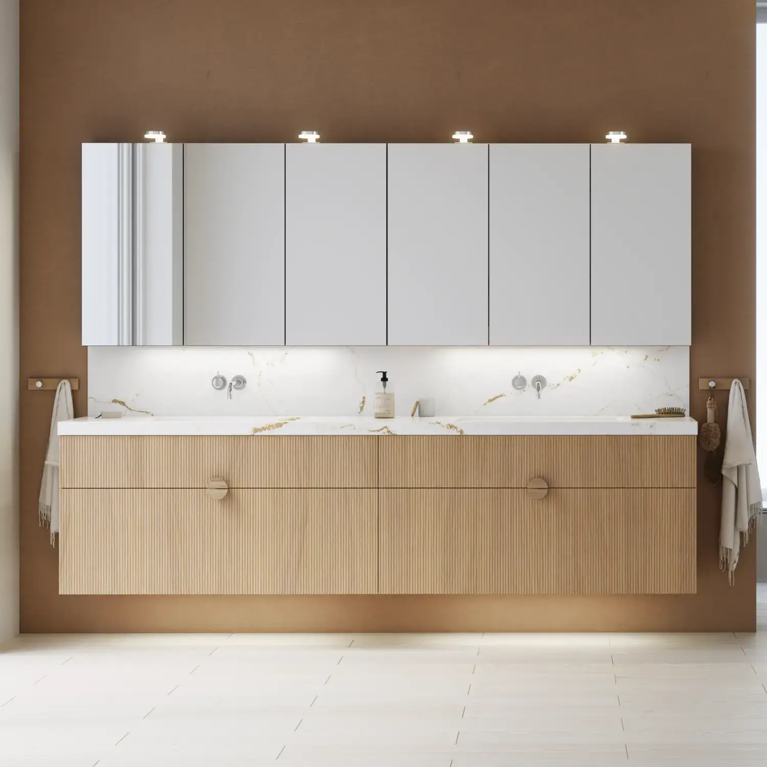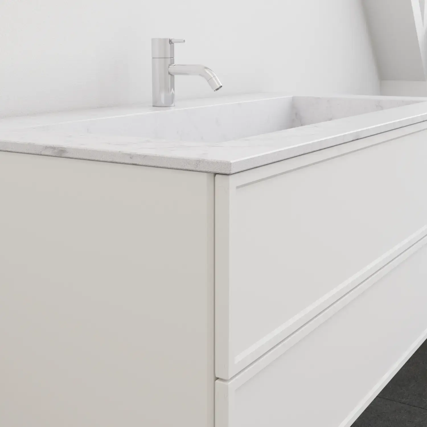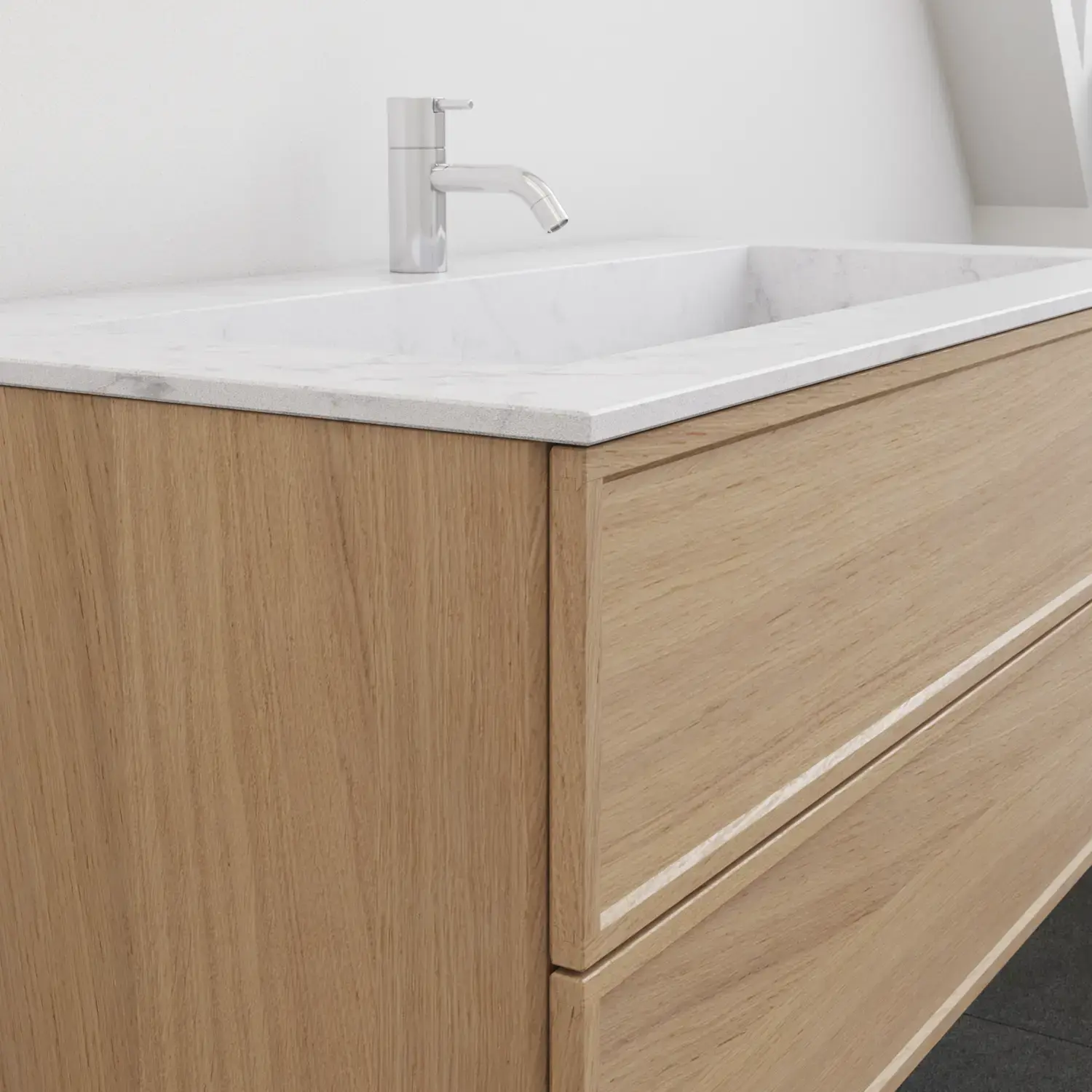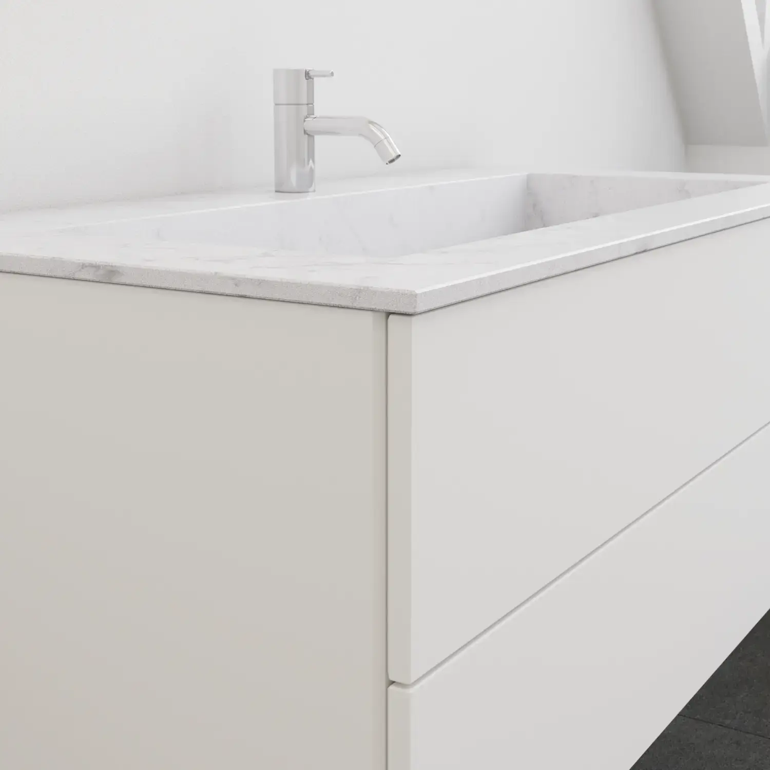 For Calidris, vanity units, cabinets, open shelving units, tall cabinets and wall cabinets are available in a wide range of depths, widths and heights. Get the complete overview in the catalogue.