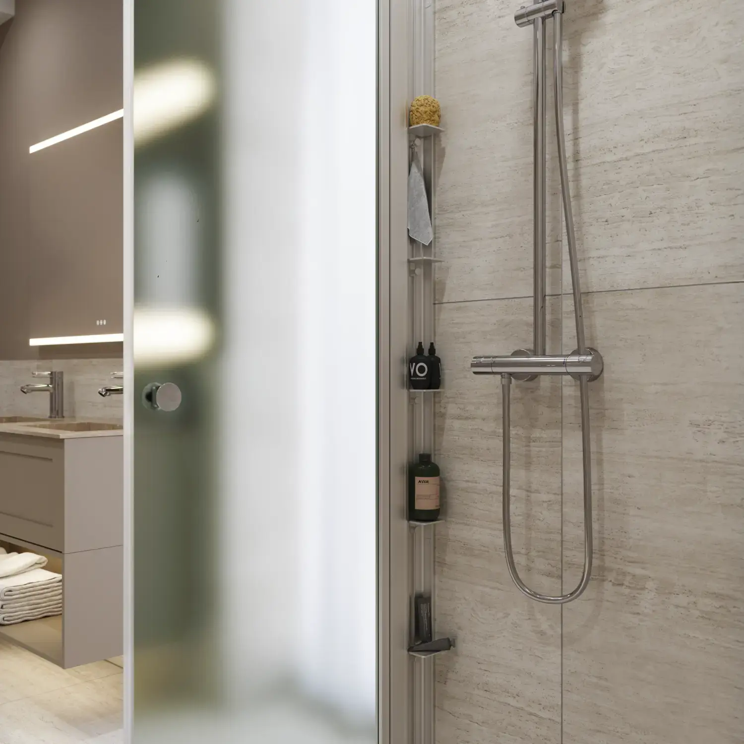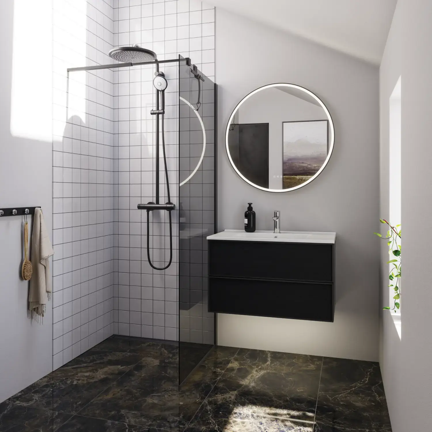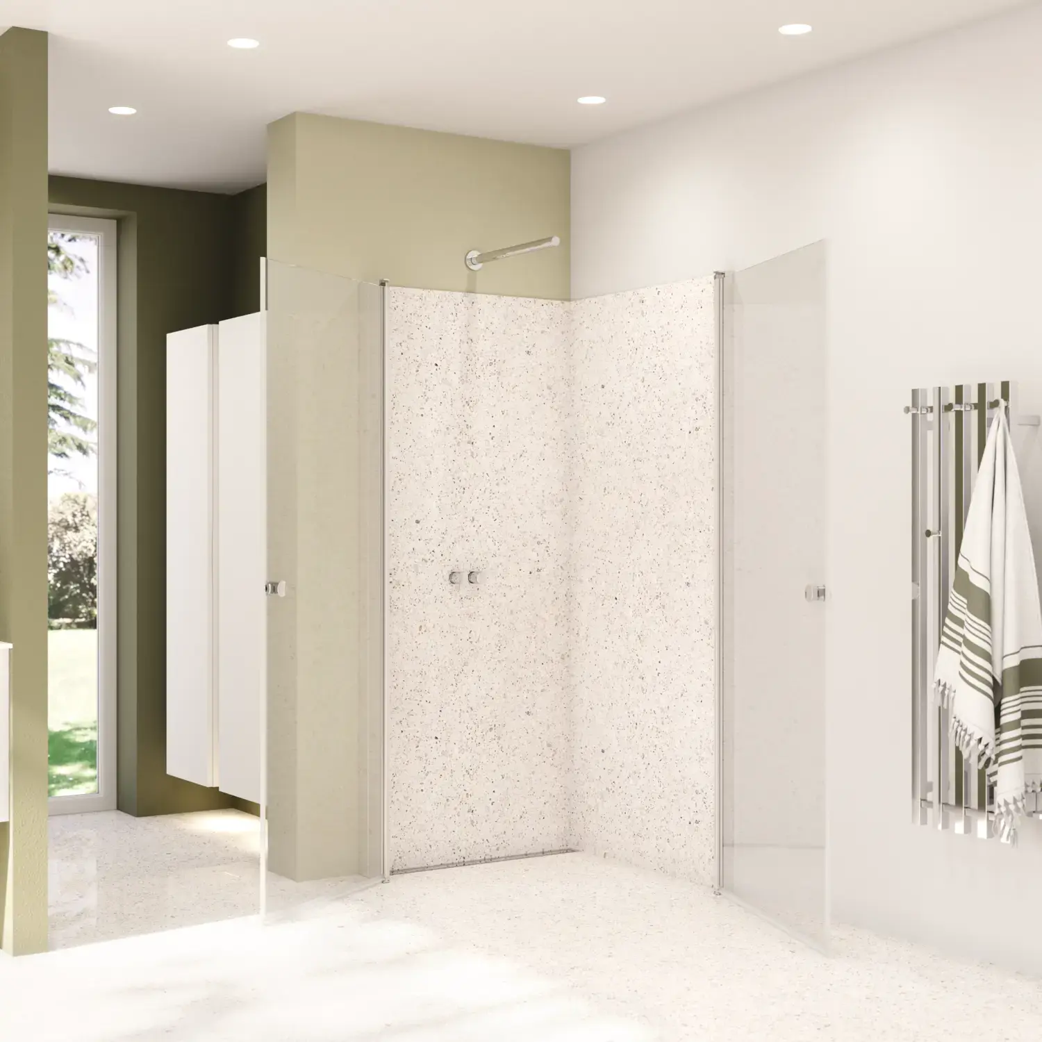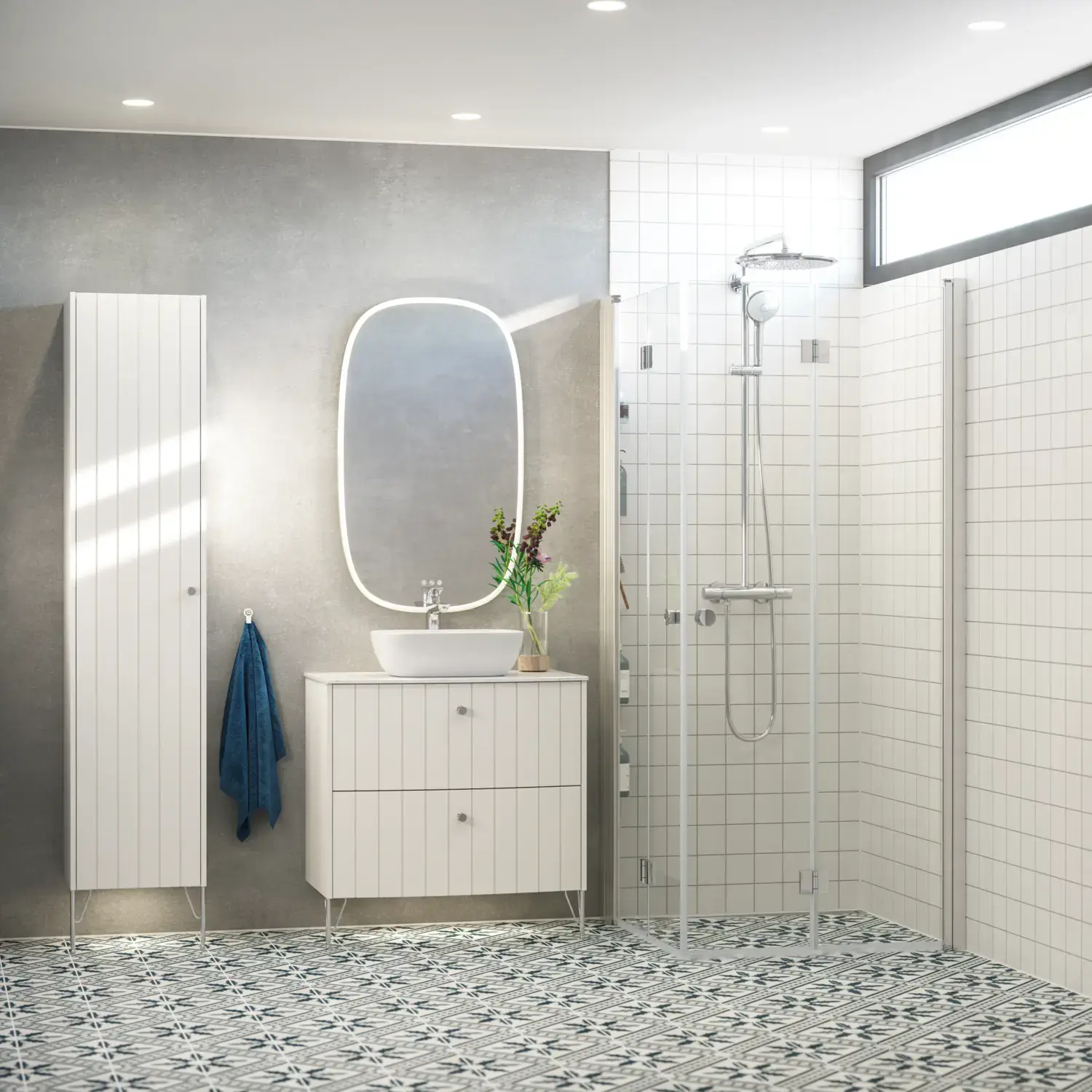 Shower panels which allow optimal use of space, as it is possible to place furniture right up the shower panel, so you have space for a wider basin or an extra cabinet.