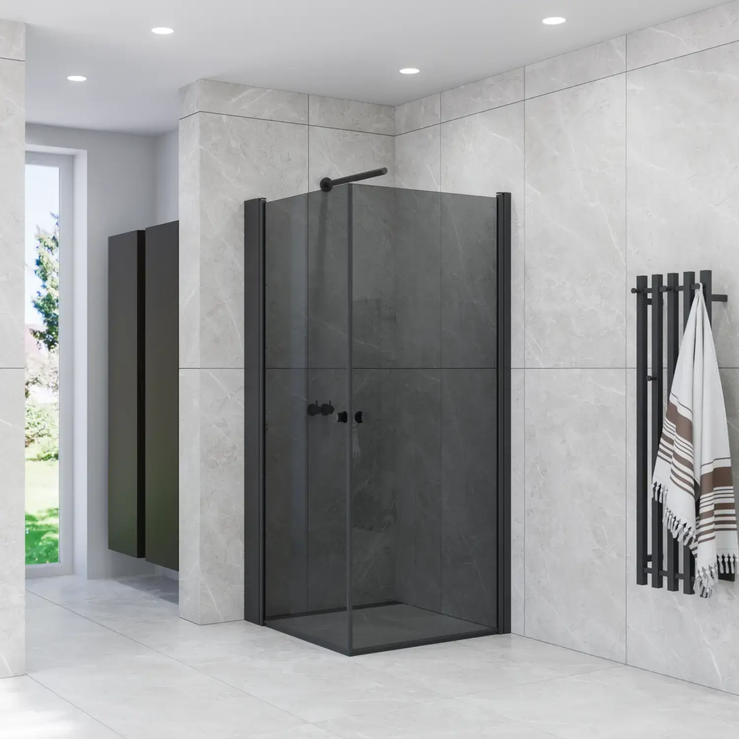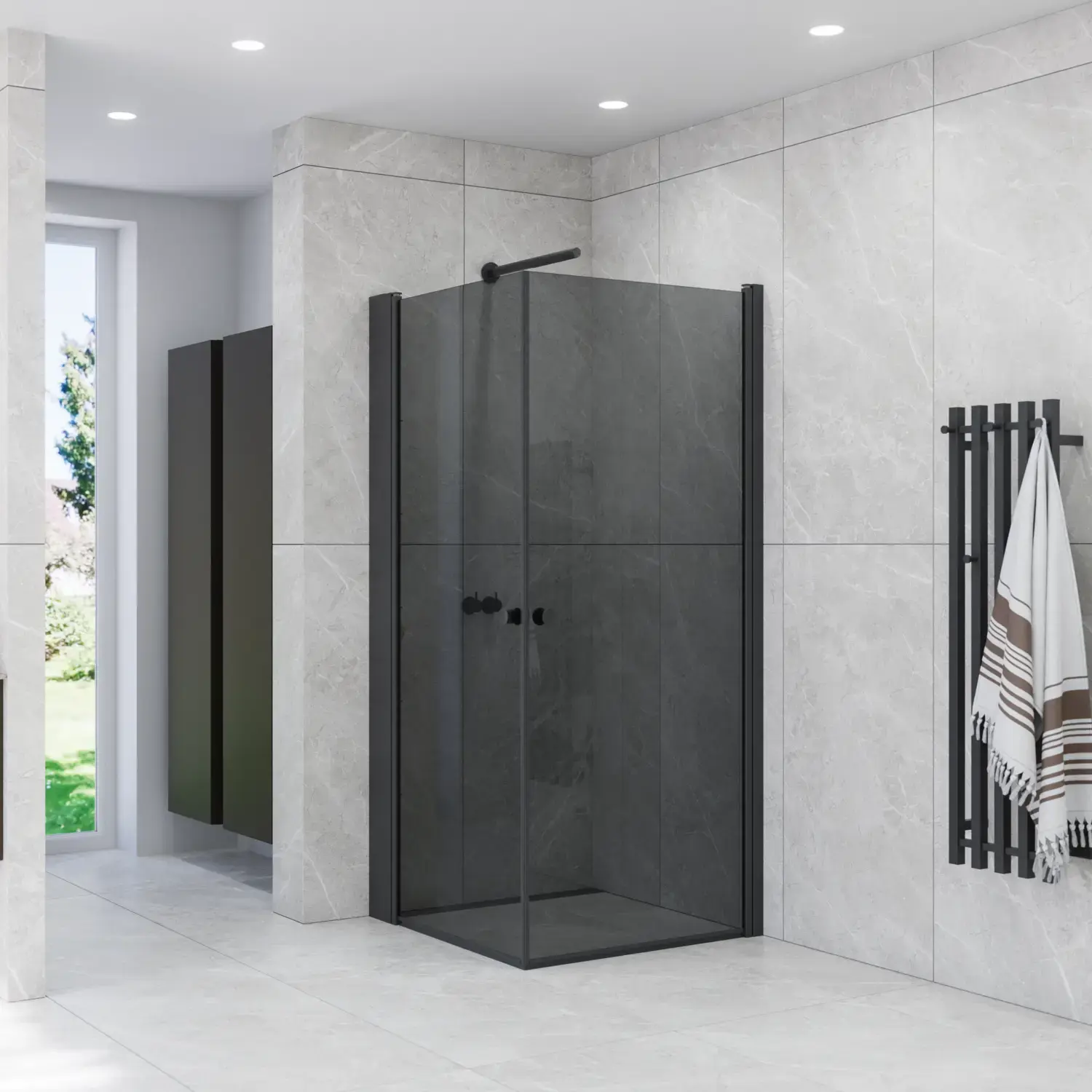 MATCH HINGED DOORS AND FIXED SHOWER PANELS