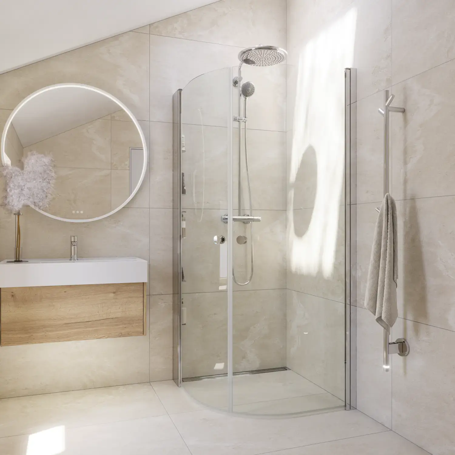 A small bathroom doesn’t have to mean doing without everyday luxury. A compact heated towel rail is the perfect solution when you want to make optimal use of every centimetre – and still enjoy warm, dry towels after your shower.